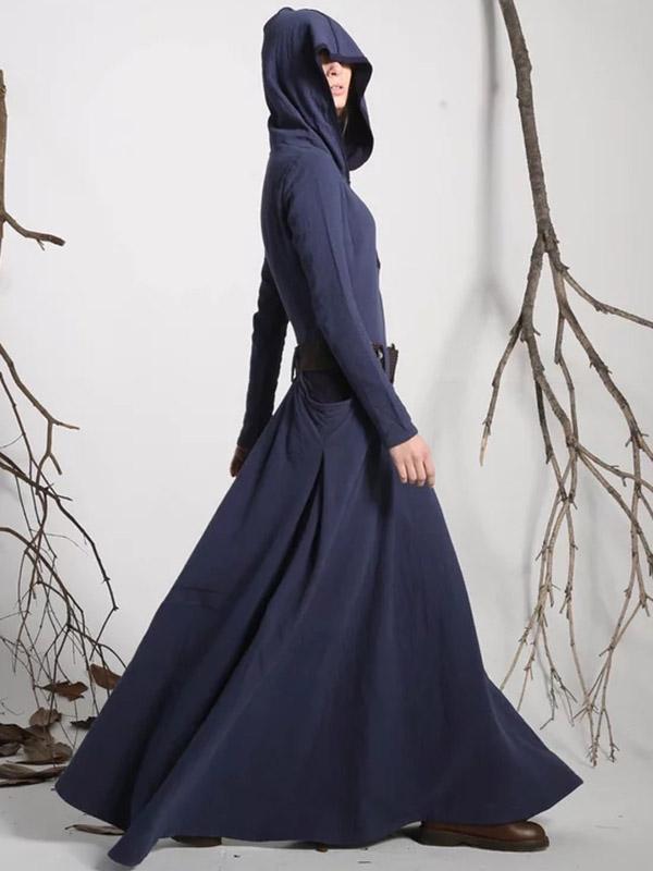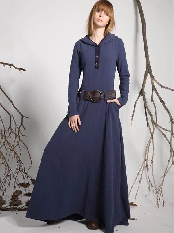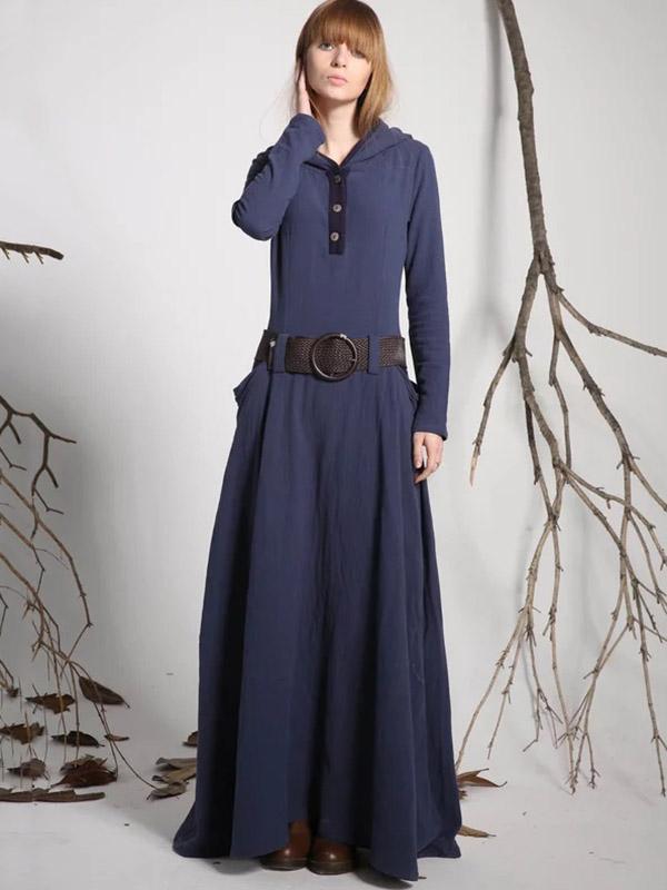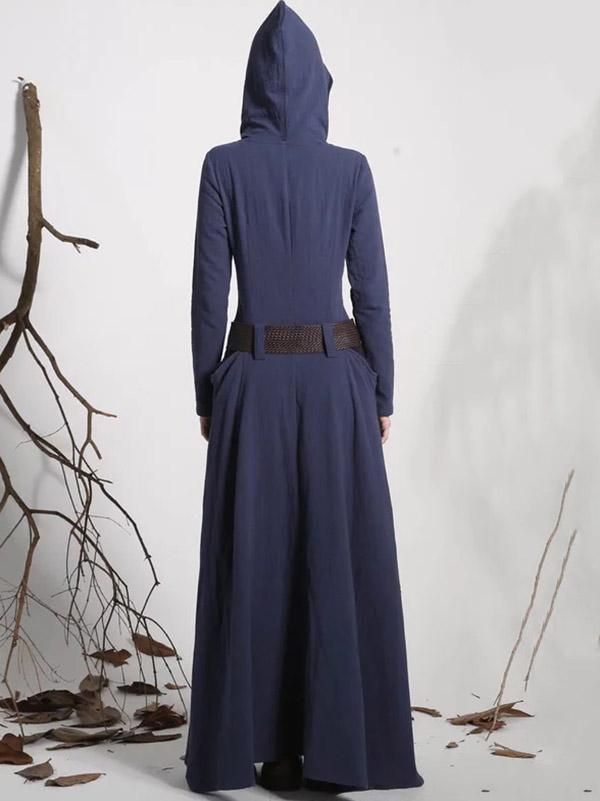Hooded Long Sleeves Belted Maxi Dress