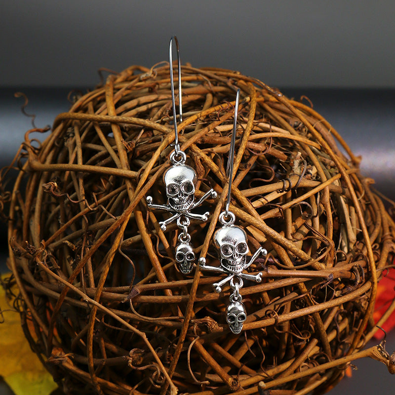 Horrible funny skull Halloween earrings