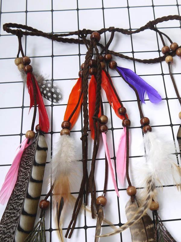 Indian Bohemia Tassels Feather Wooden Bead Headwear Accessories