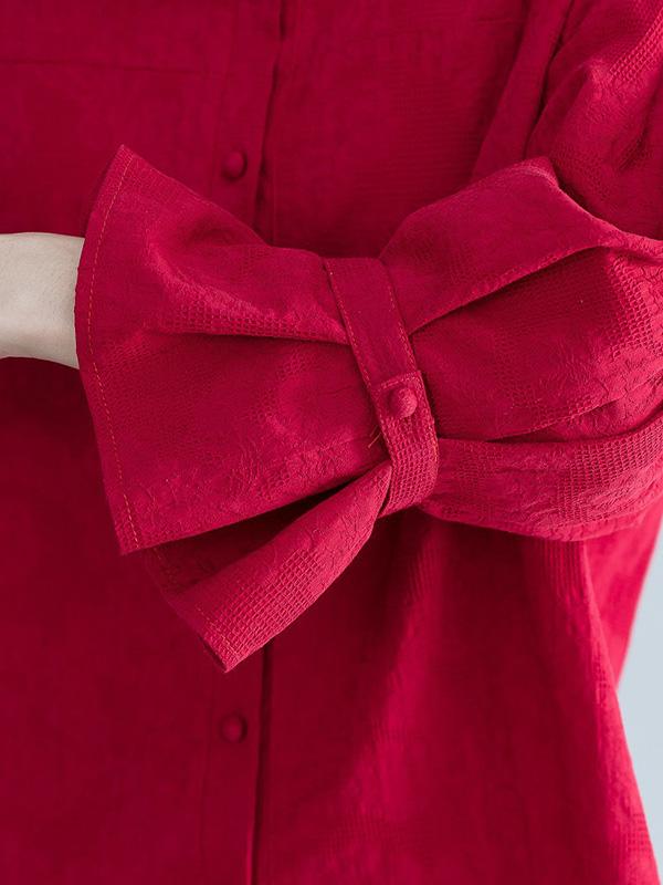 Jacquard Falbala Puff Sleeves Blouse