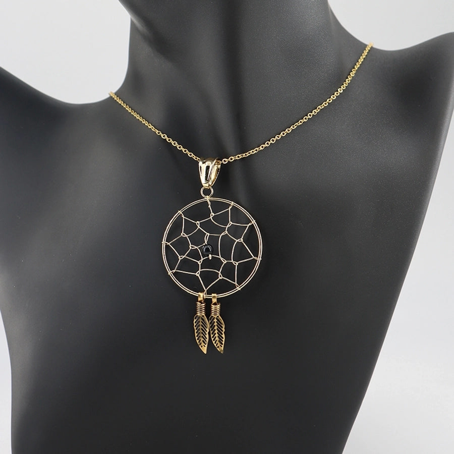 Jewelry Casual Vintage Style Leaf Dreamcatcher Feather 304 Stainless Steel Gold Plated Handmade Pendant Necklace