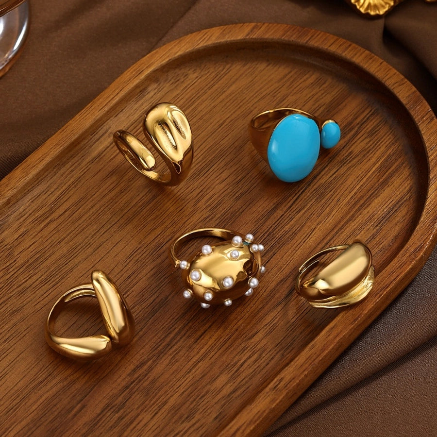 Jewelry Elegant Classical Vintage Style Geometric Water Droplets 316L Stainless Steel Titanium Steel Wide Band Rings Open Rings