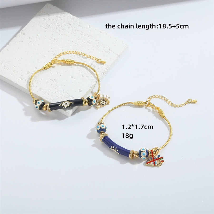 Jewelry Elegant Simple Style Commute Devil's Eye Copper Zircon 14K Gold Plated Bracelets