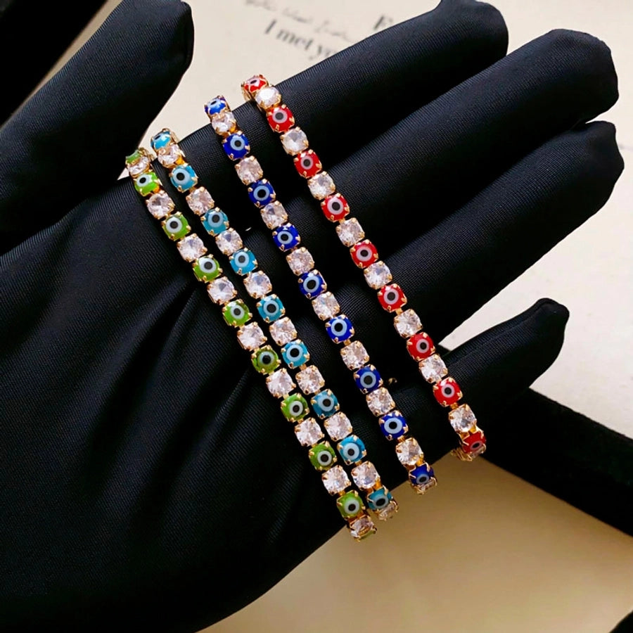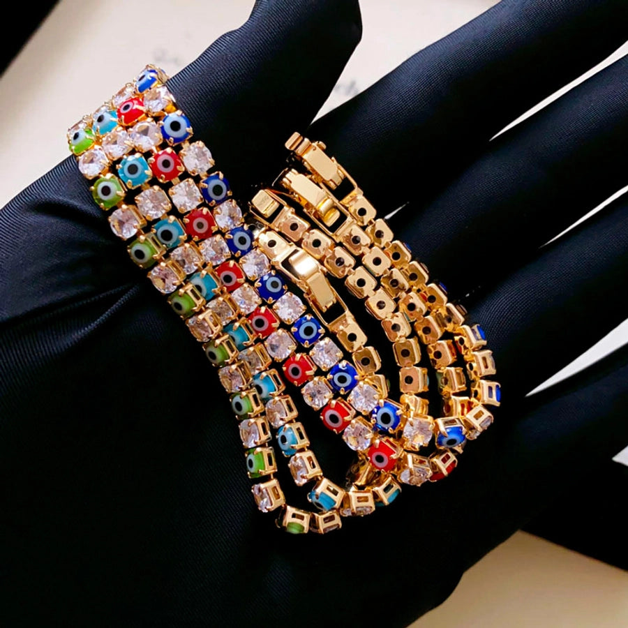 Jewelry Simple Style Classic Style Geometric Eye Copper Glass Zircon 18K Gold Plated Inlay Bracelets