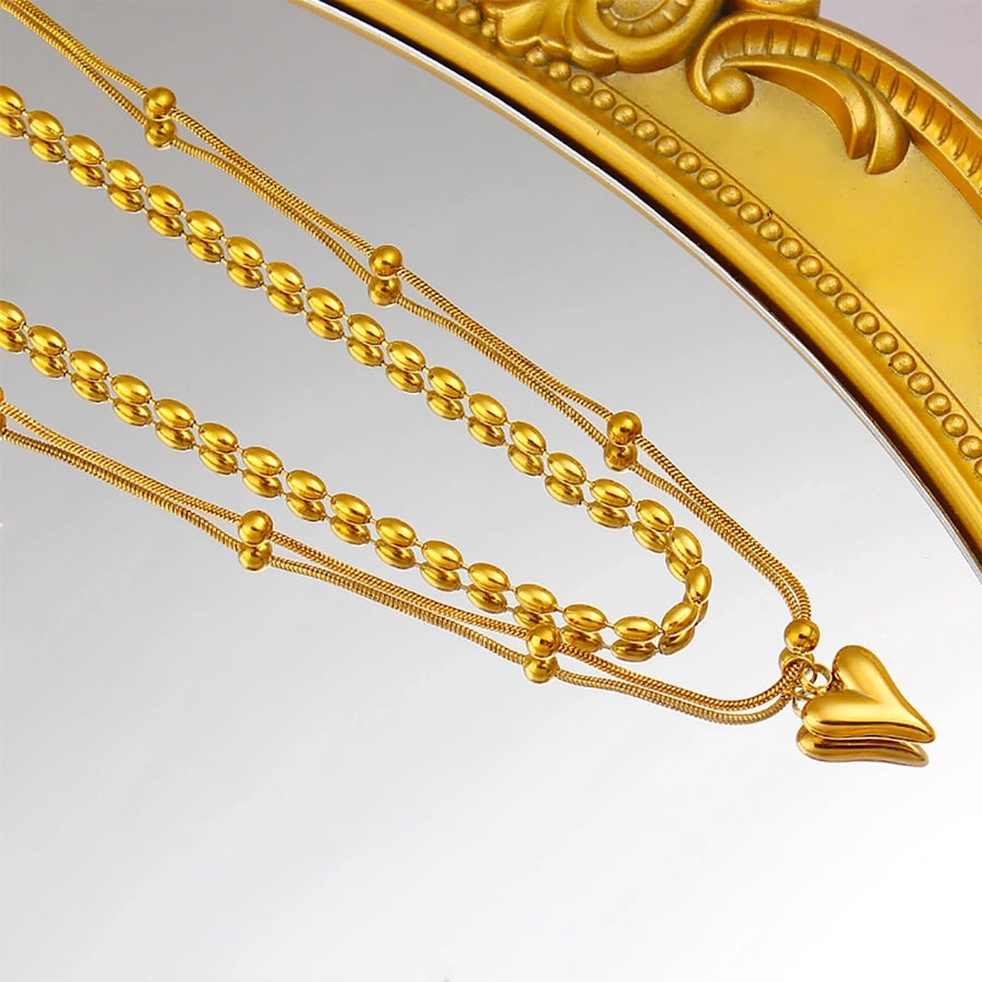 Jewelry Simple Style Heart Shape 304 Stainless Steel 18K Gold Plated Plating Double Layer Necklaces