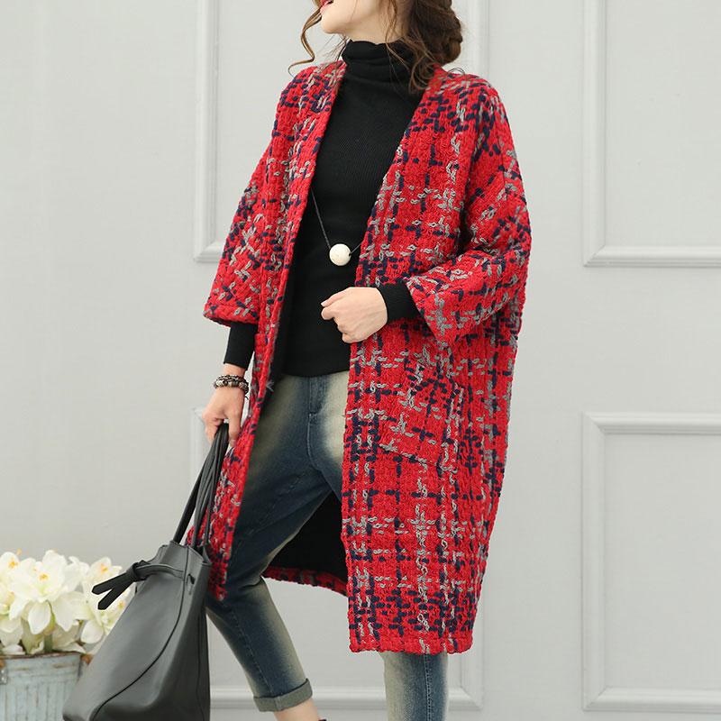 Keep Warm Long Sleeves Cardigan Thick Red Winter Women Coat