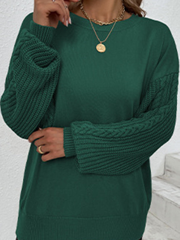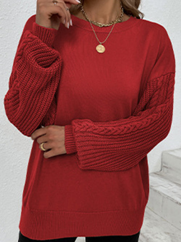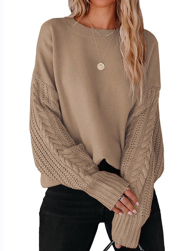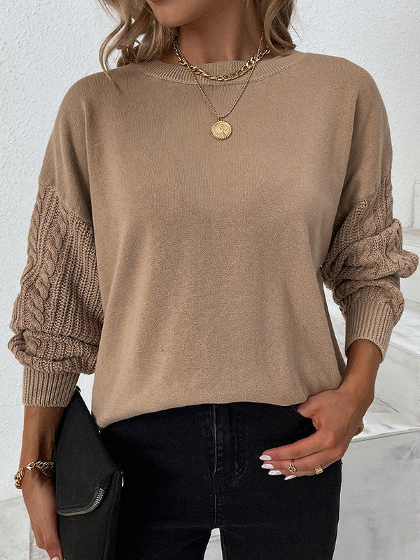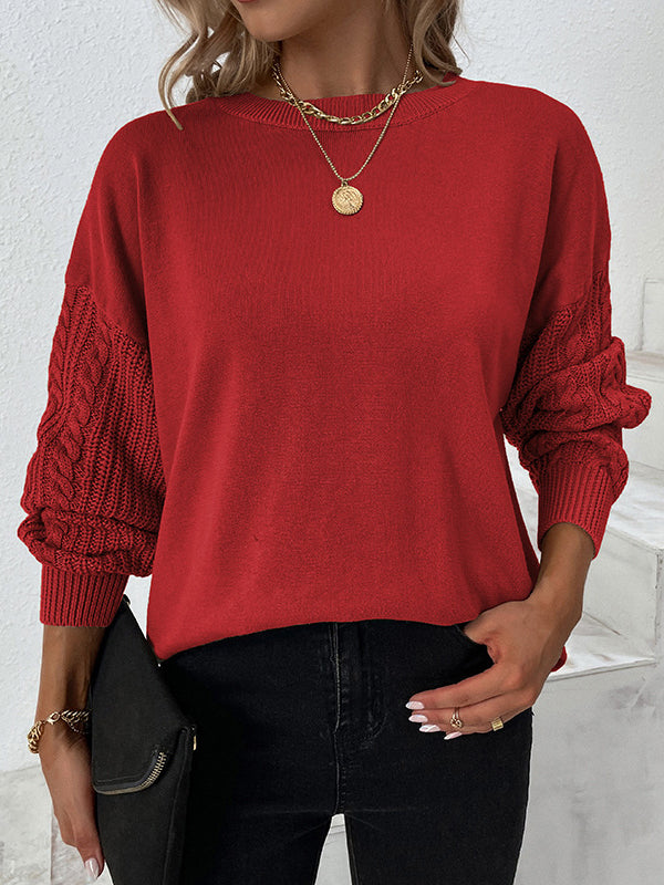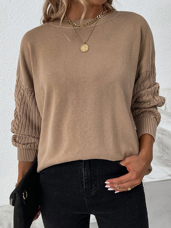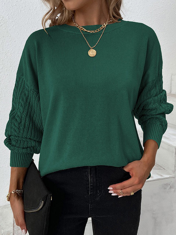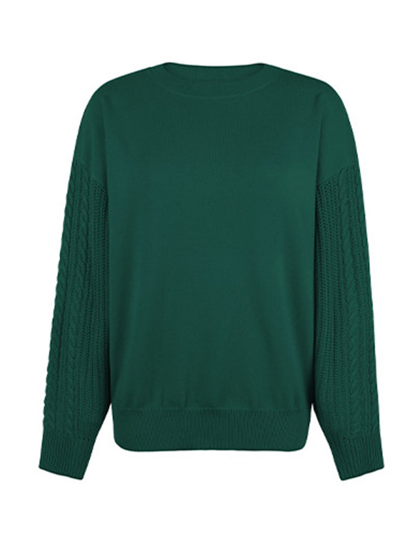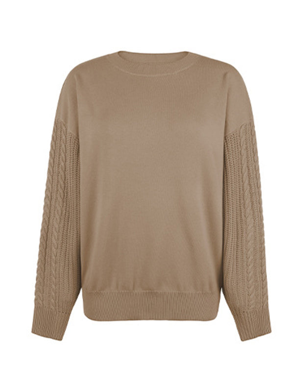 Knitted Twist Long Sleeves Solid Color Round-Neck Sweater Tops