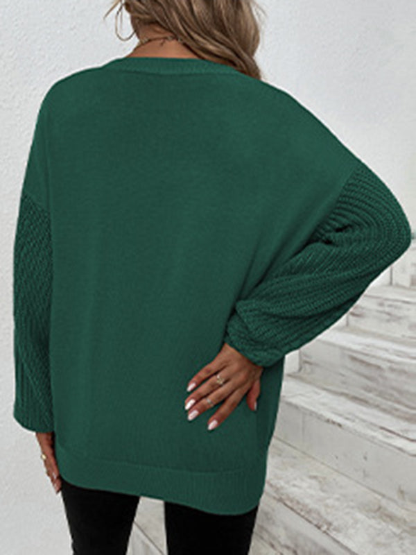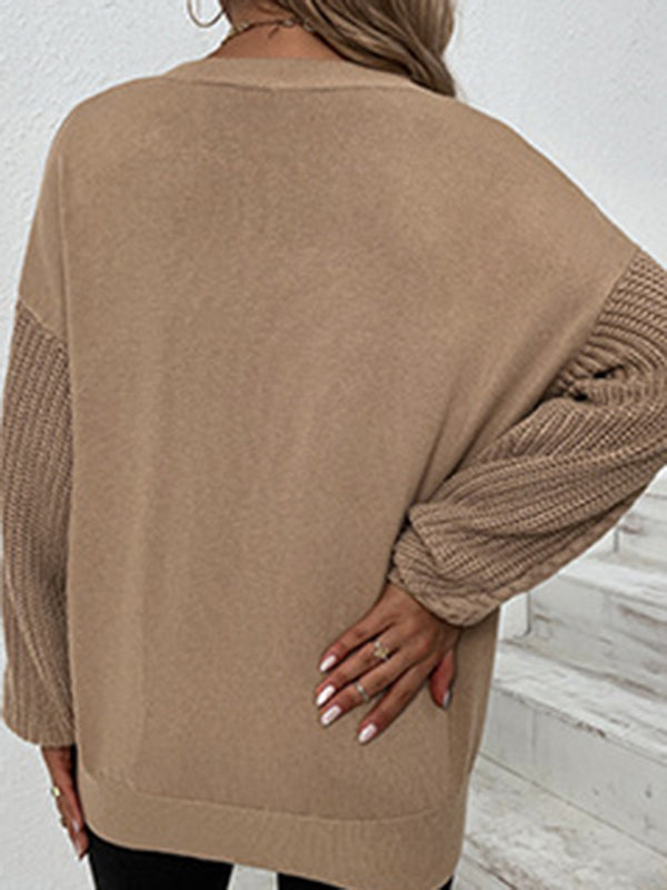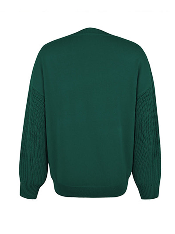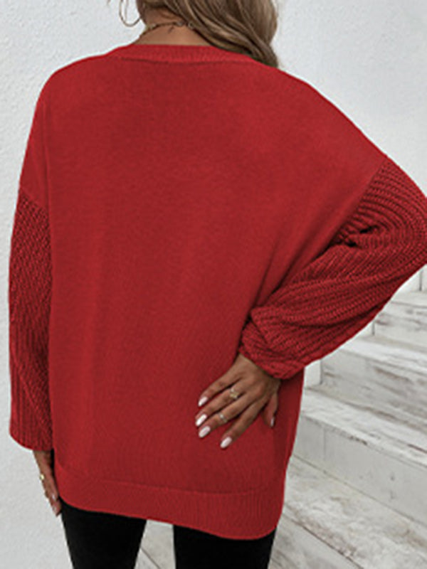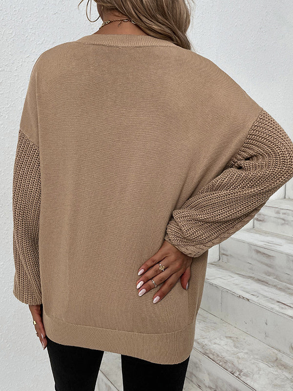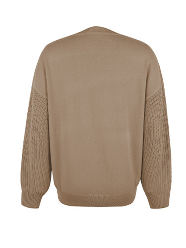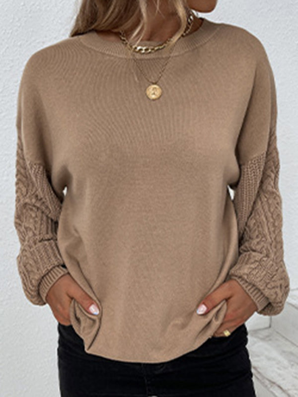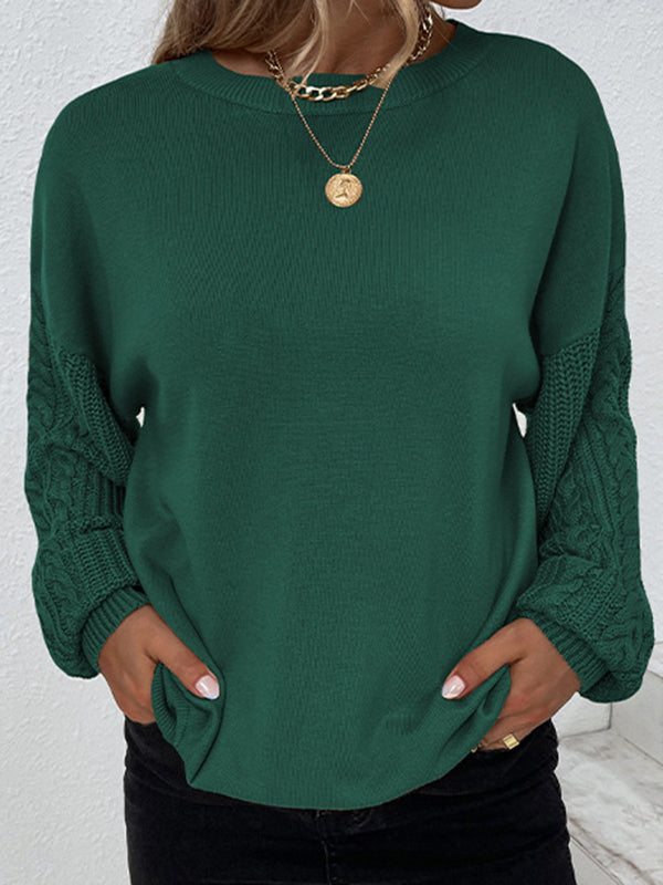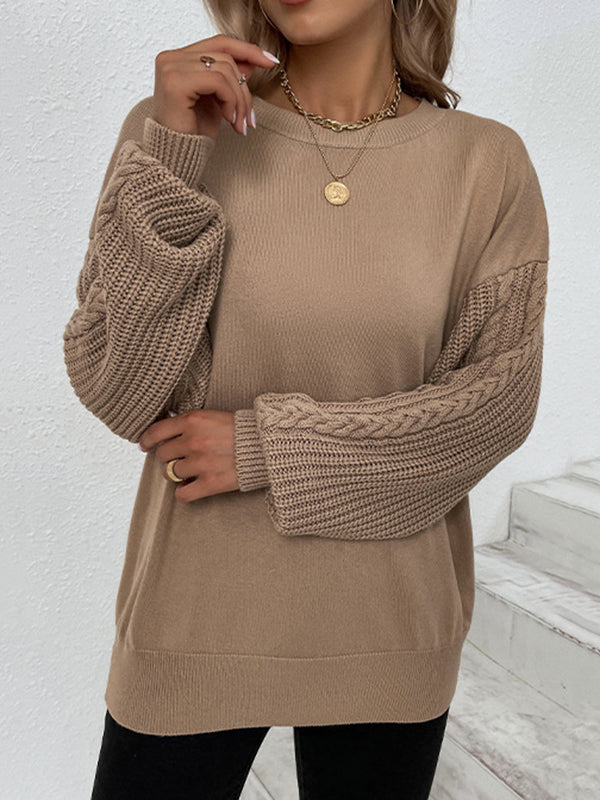 Knitted Twist Long Sleeves Solid Color Round-Neck Sweater Tops
