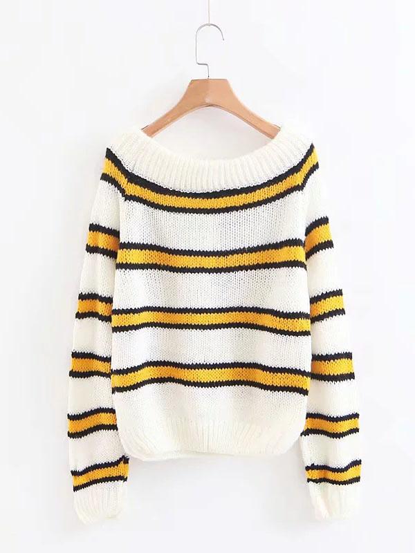 Knitting Striped Puff Sleeve Sweater Tops