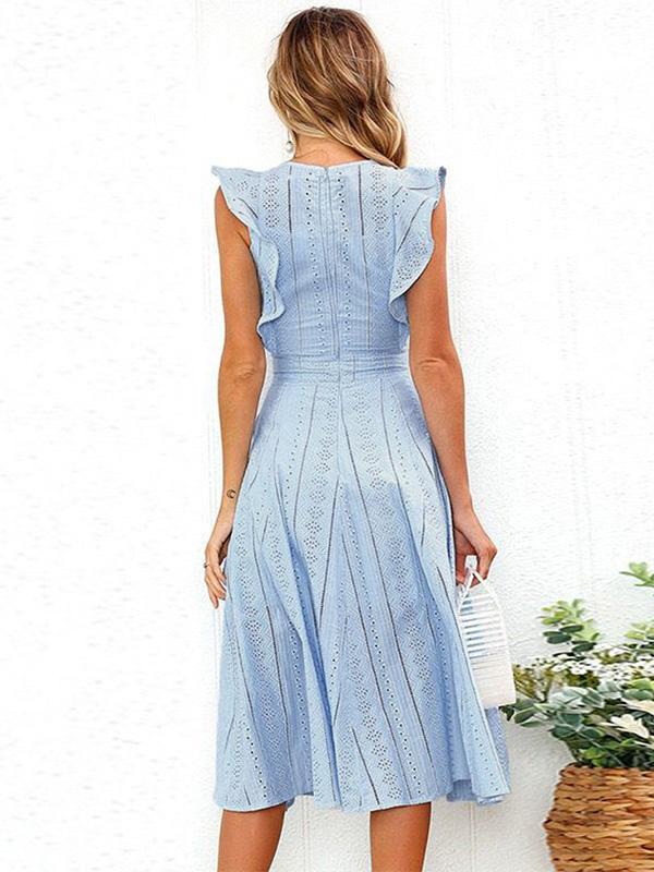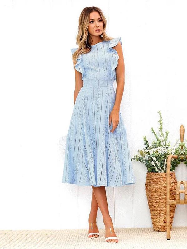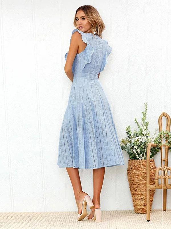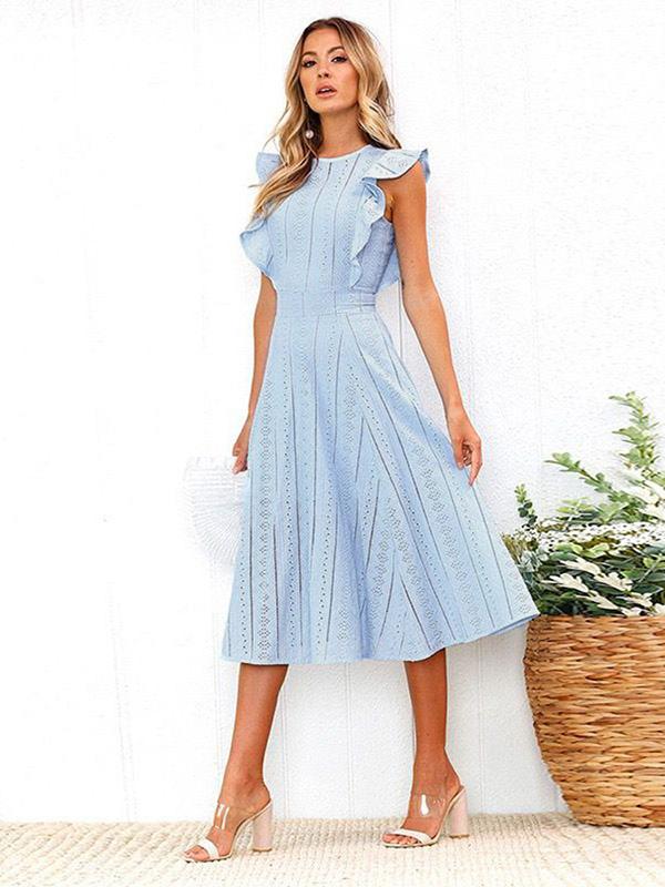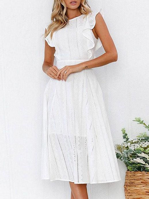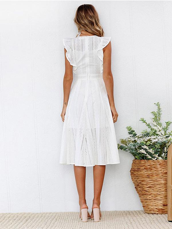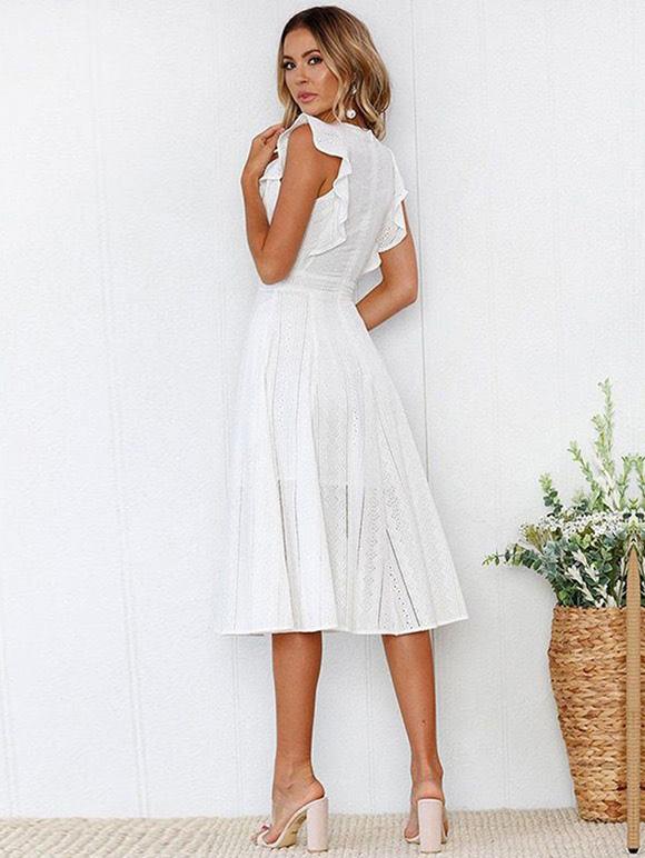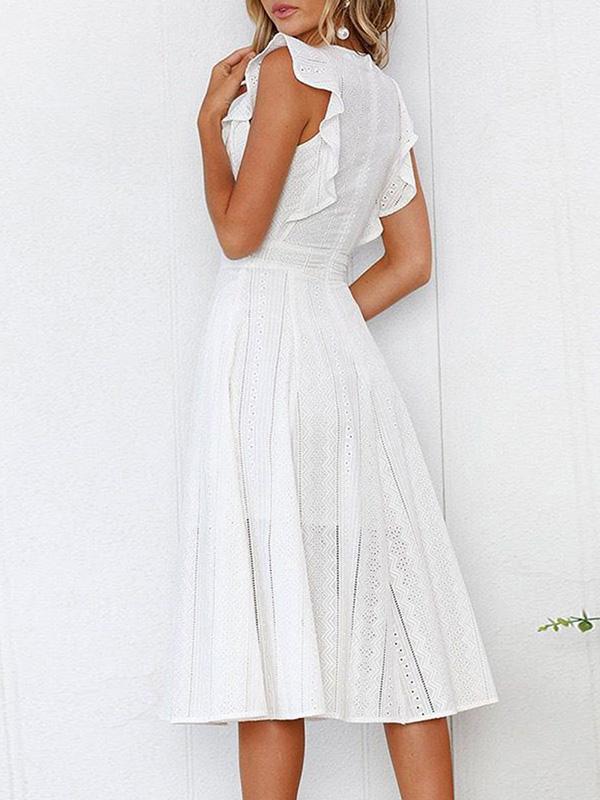 Lace Hollow Fuffled Irregular Midi Dress