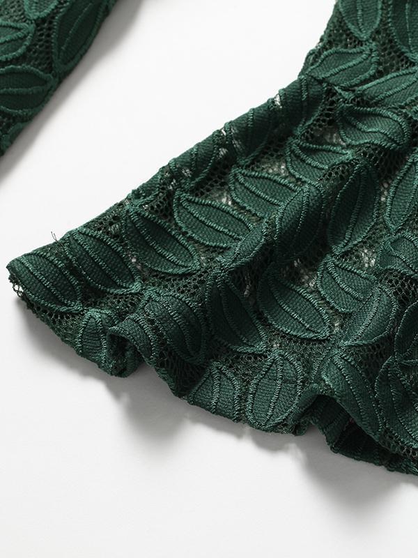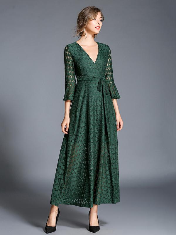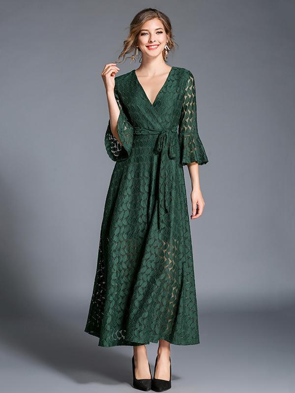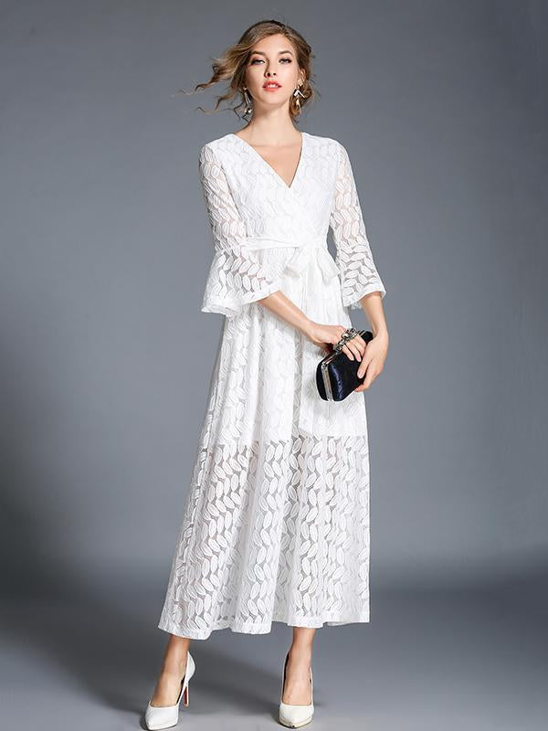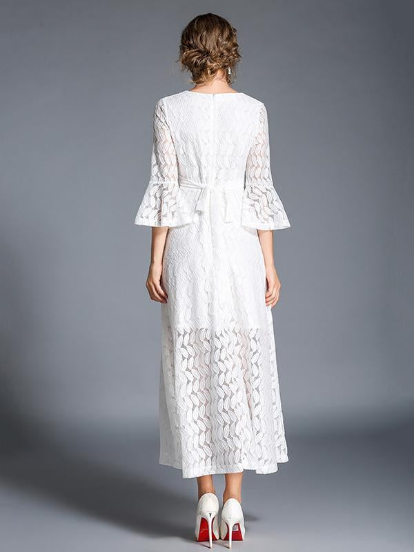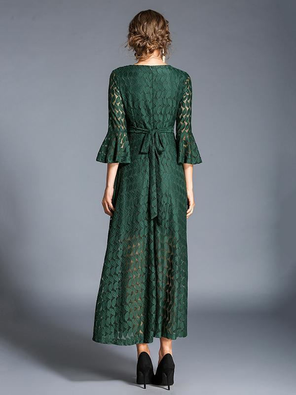 Lace Hollow V-neck Flared Sleeves Maxi Dress