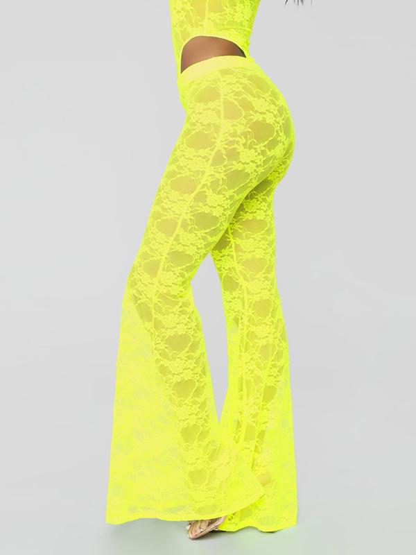 Lace Spaghettti -neck Bodysuits And Flared Pants Suits