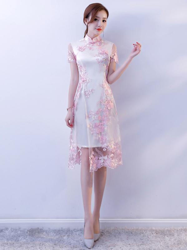 Lace Split-joint Cheongsam Mini Dress
