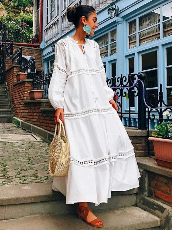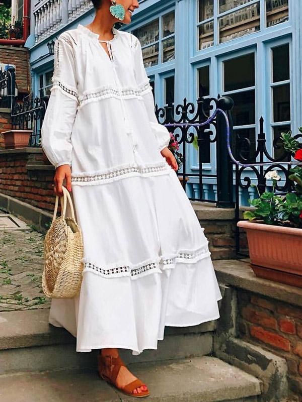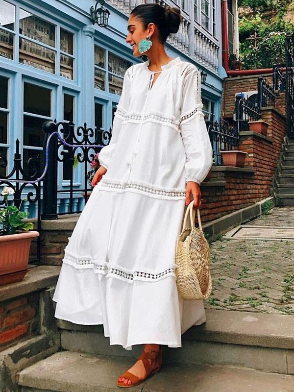 Lace Split-joint Puff Long Sleeves Maxi Dress