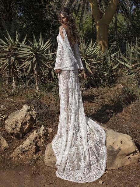 Lace-up Flared Sleeve V-back Evening Dress