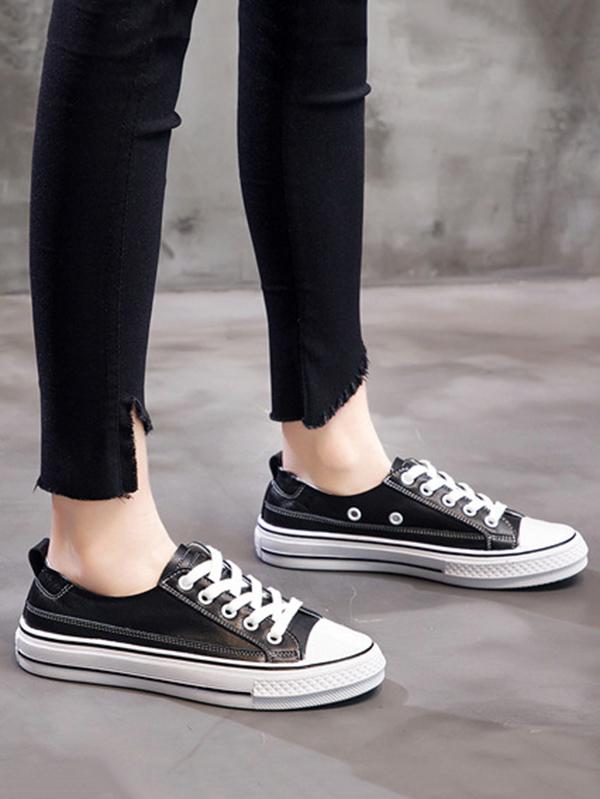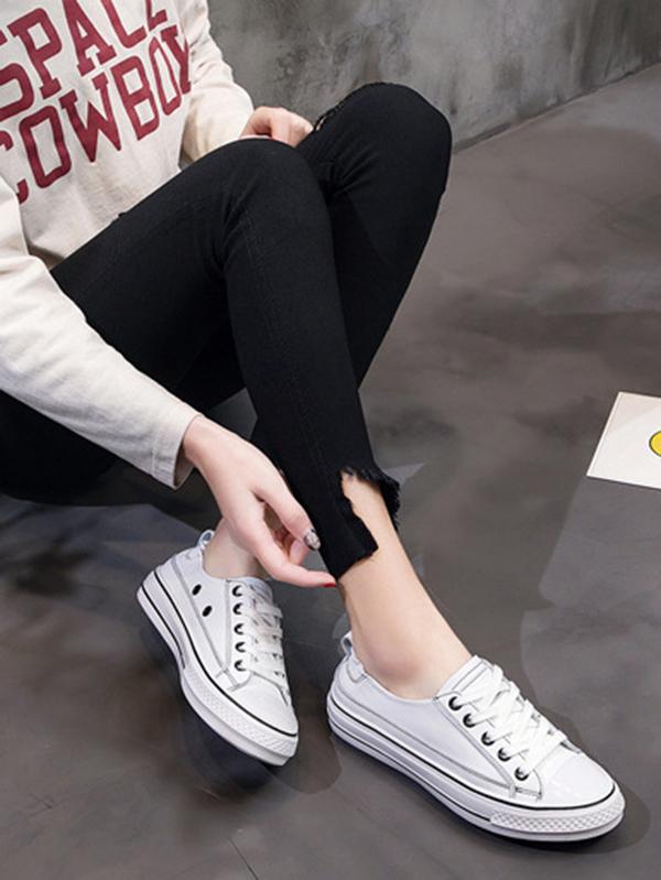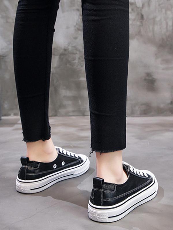Lace Up Pu Leather Sneakers
