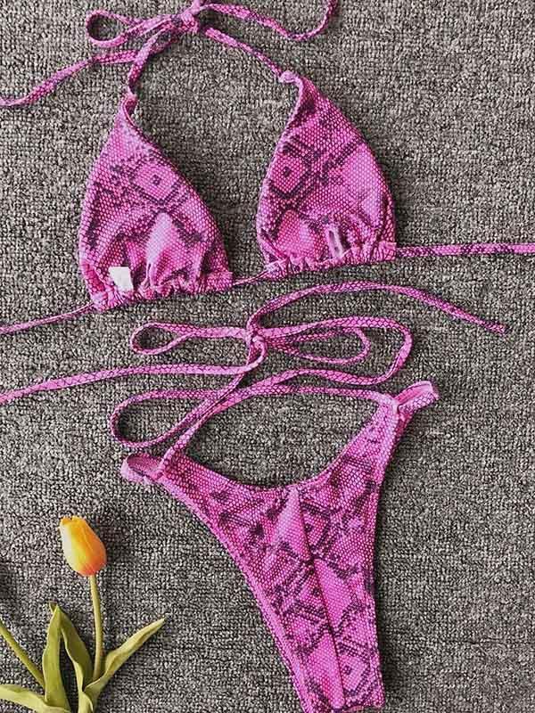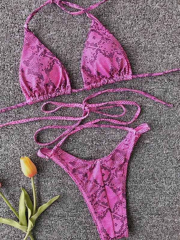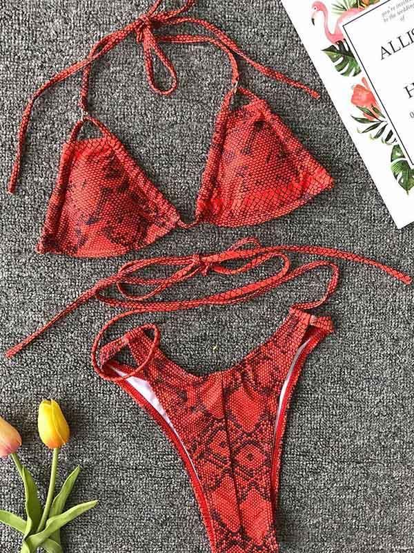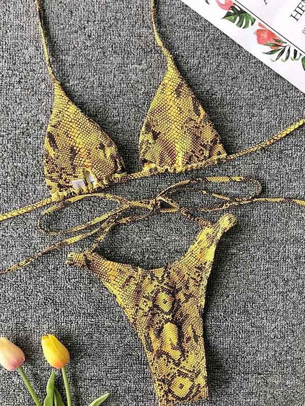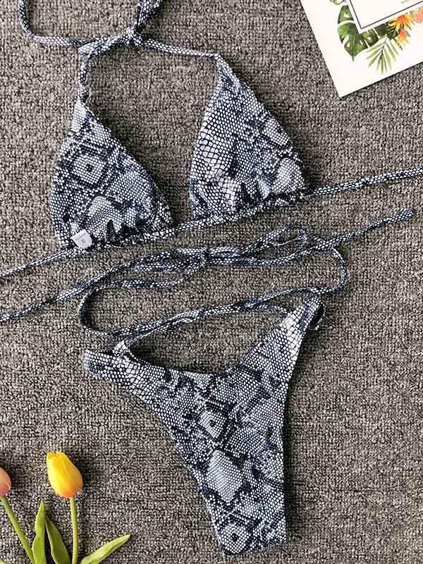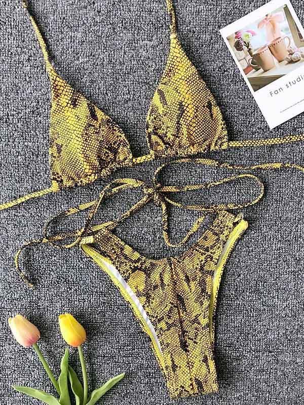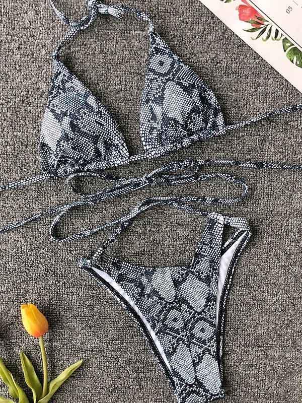 Lace Up Snakeskin Sexy Bikinis Swimwear