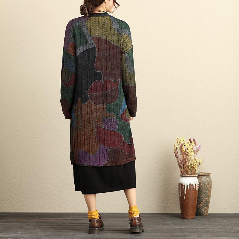 Lacing Long Sleeve Printing Open-Knitting Cardigan Coat
