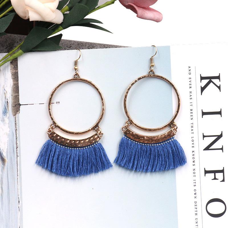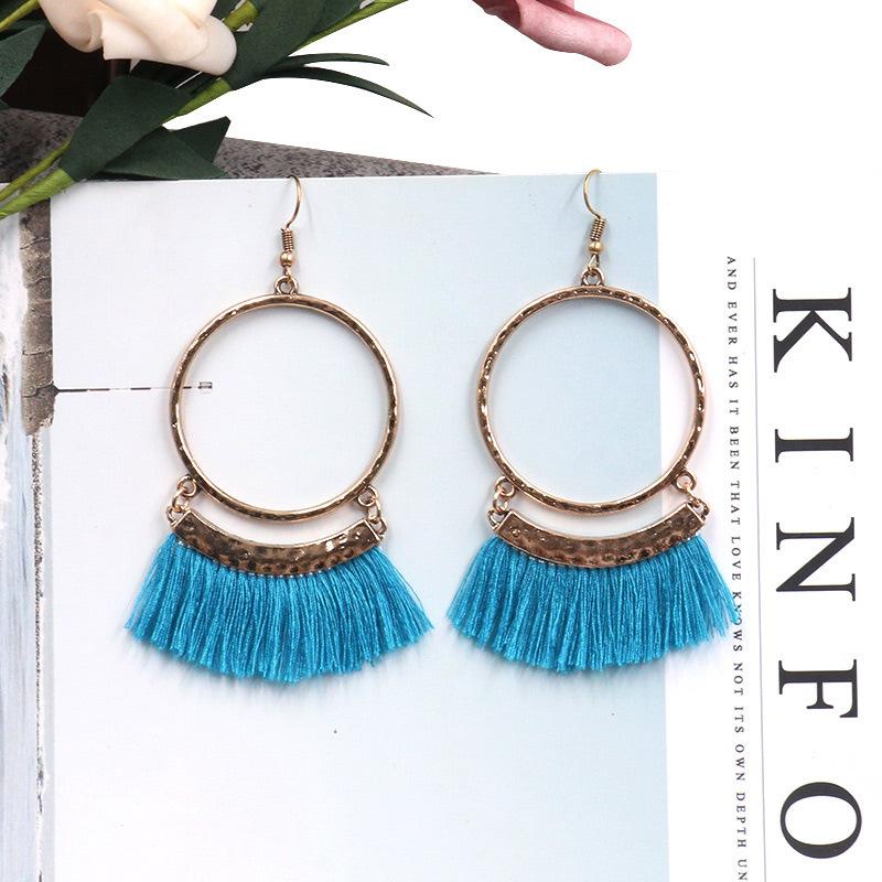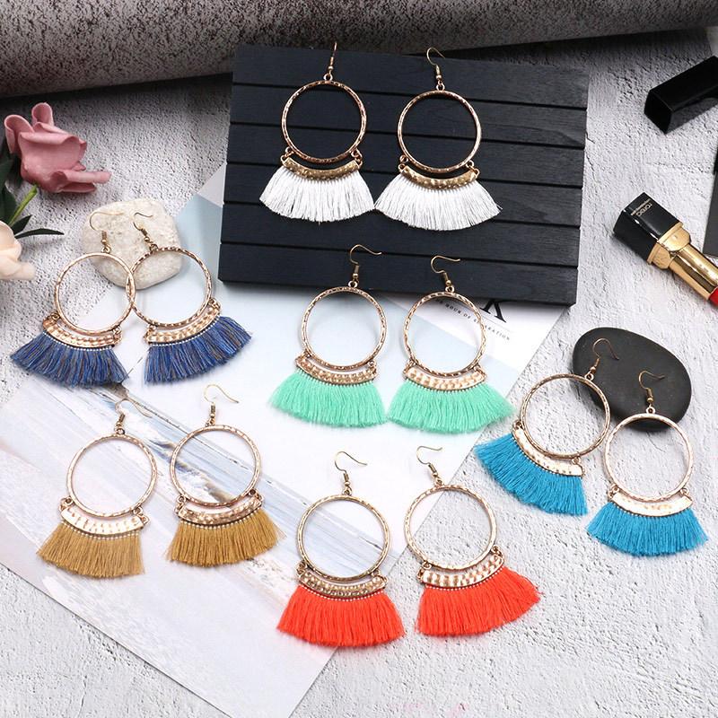 Large circle earrings gold old alloy long tassel pendant Earrings Wholesale