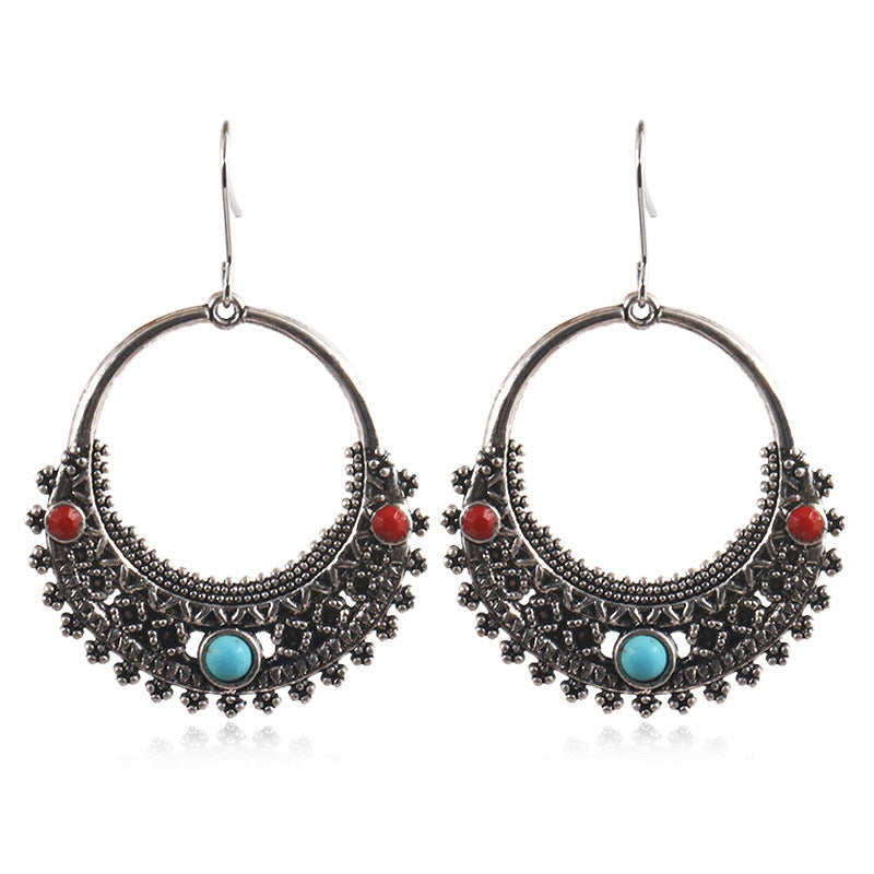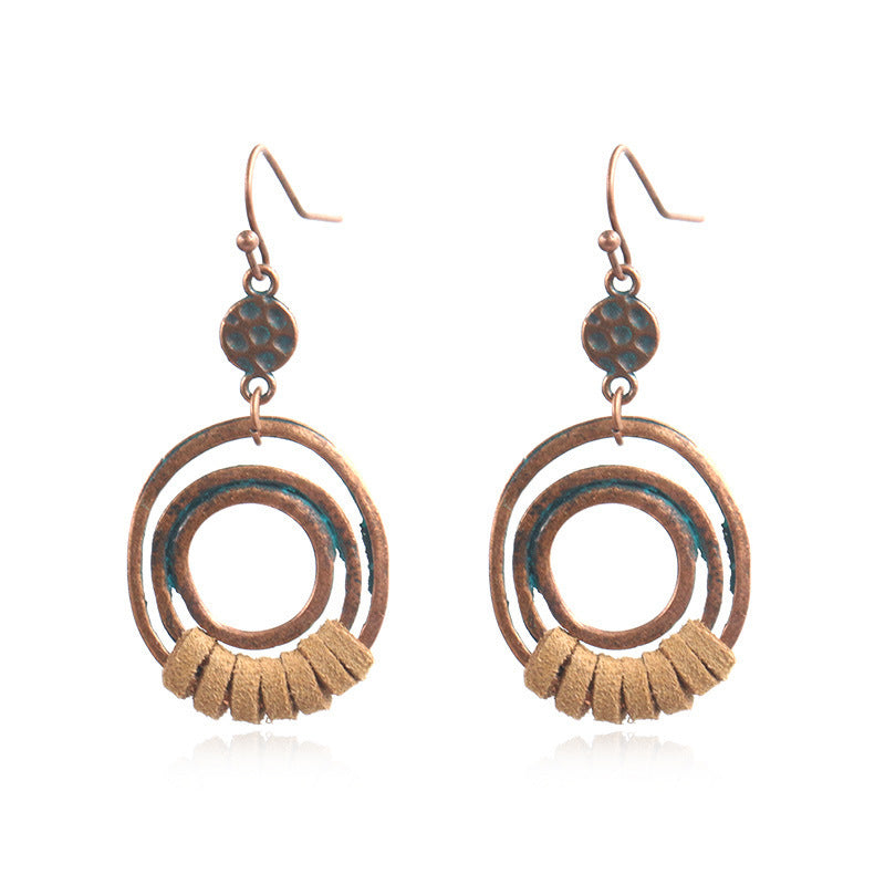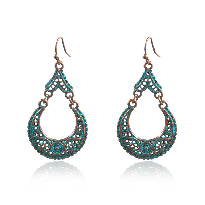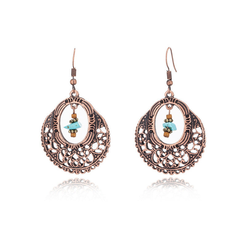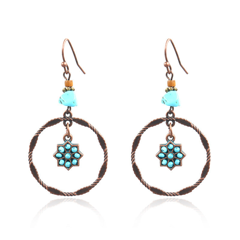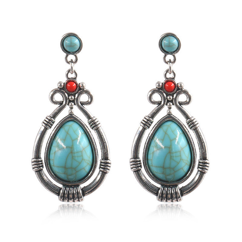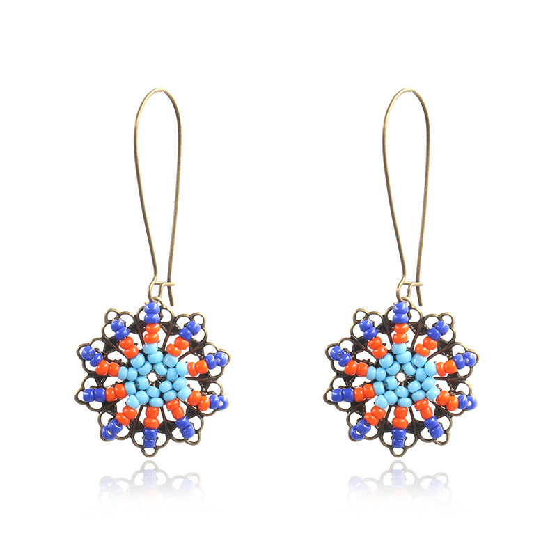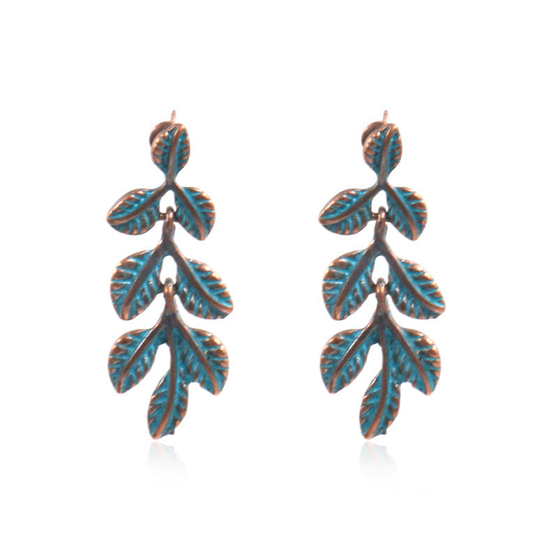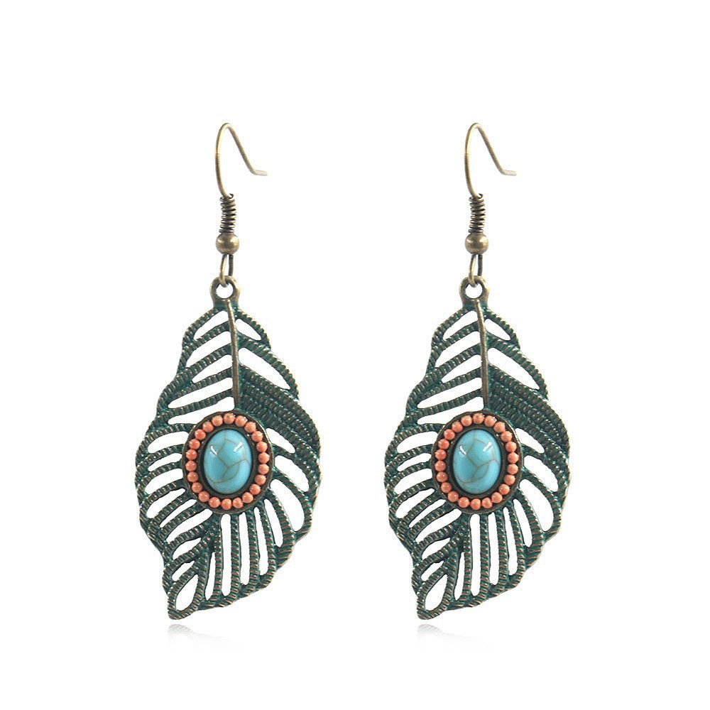 Leaf drop-shaped handmade rice beads woven turquoise earrings