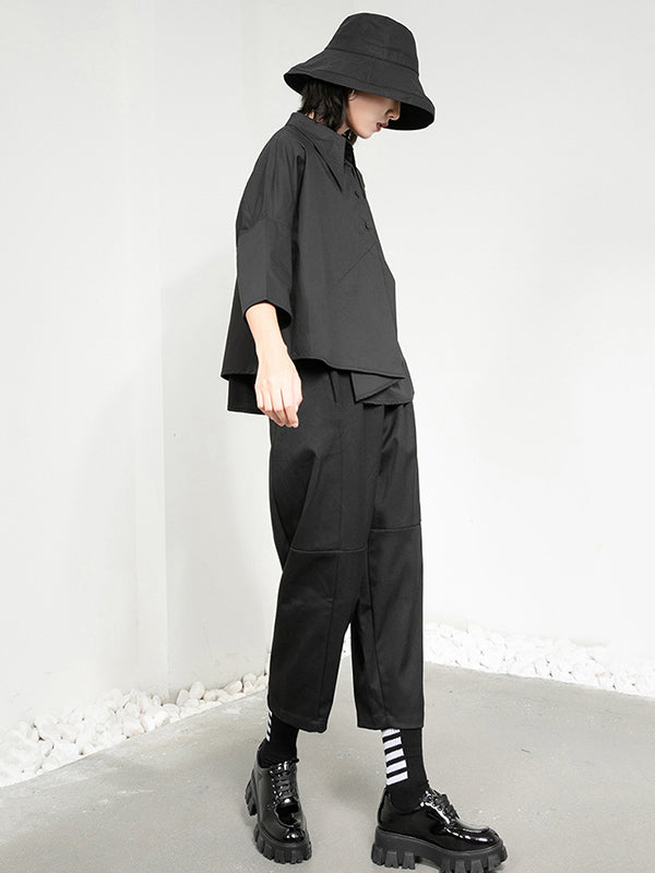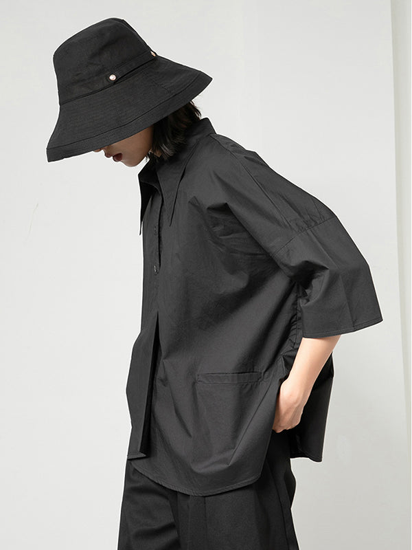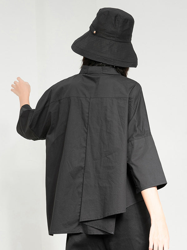 Leisure Fashion Loose Irregularity Solid Color Polo Blouses&Shirts Tops