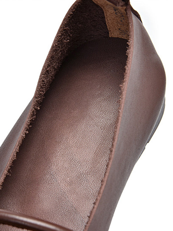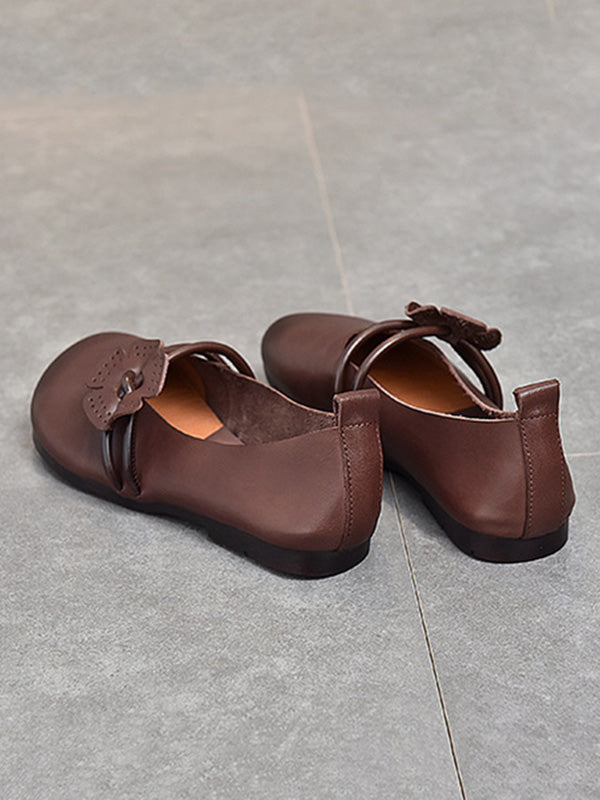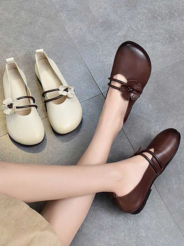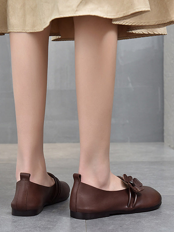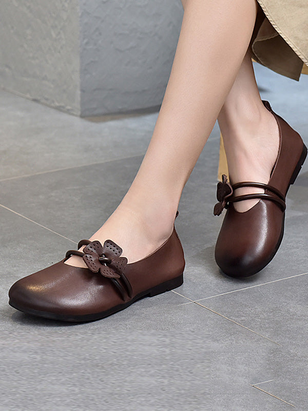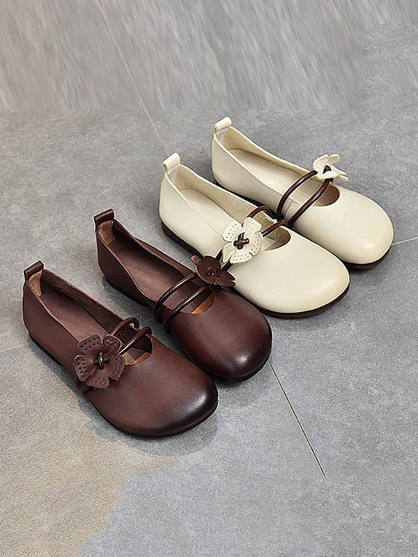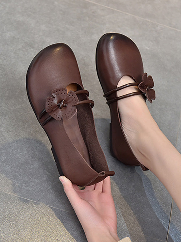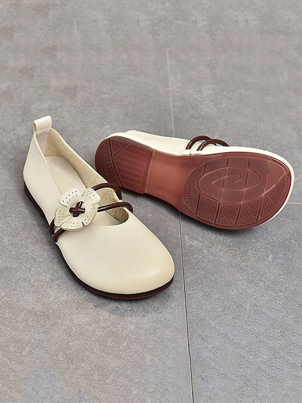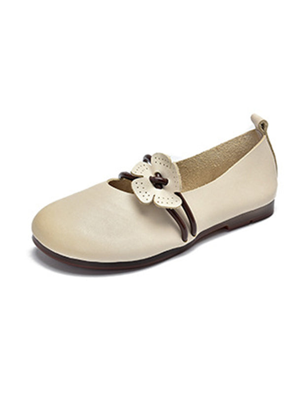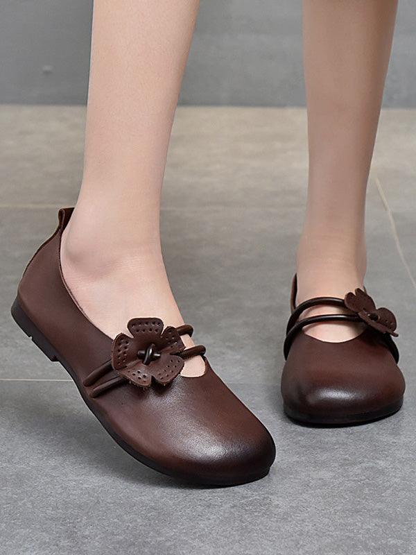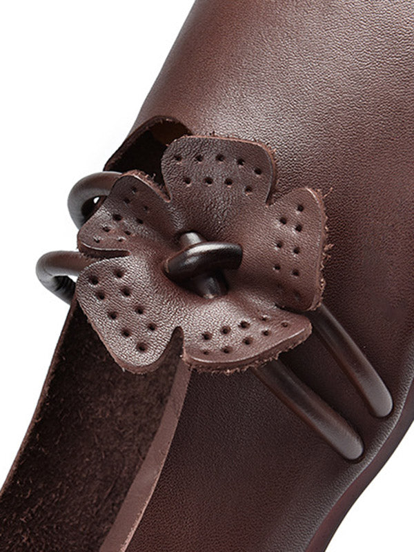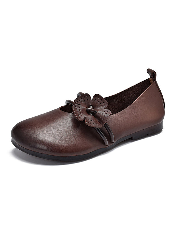 Leisure Fashionflat Flower-Embellished Flat Heel Leather Shoes