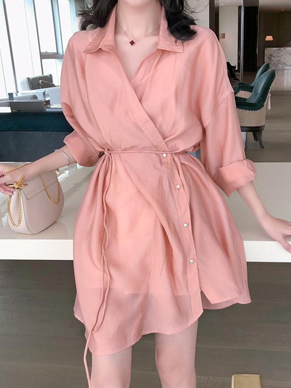 Leisure Two Piece Halter Tops&Shirt Dress Set