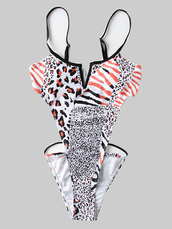 Leopard-Printed Hollow Backless One-Piece Swimwear