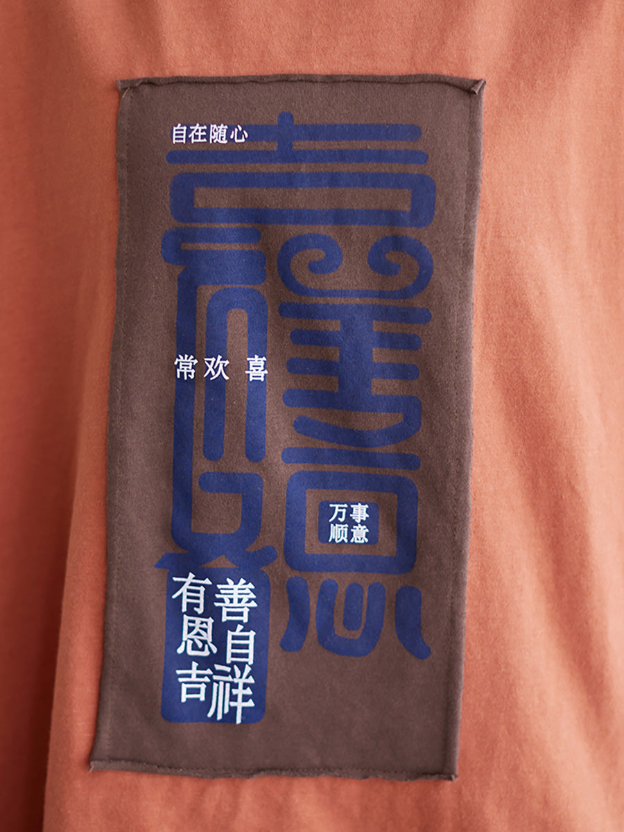 Plus Size Women Letter Patchwork Casual Loose T Shirt