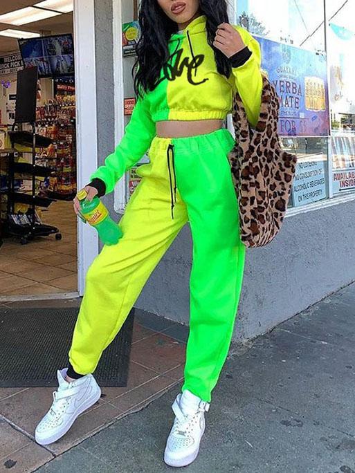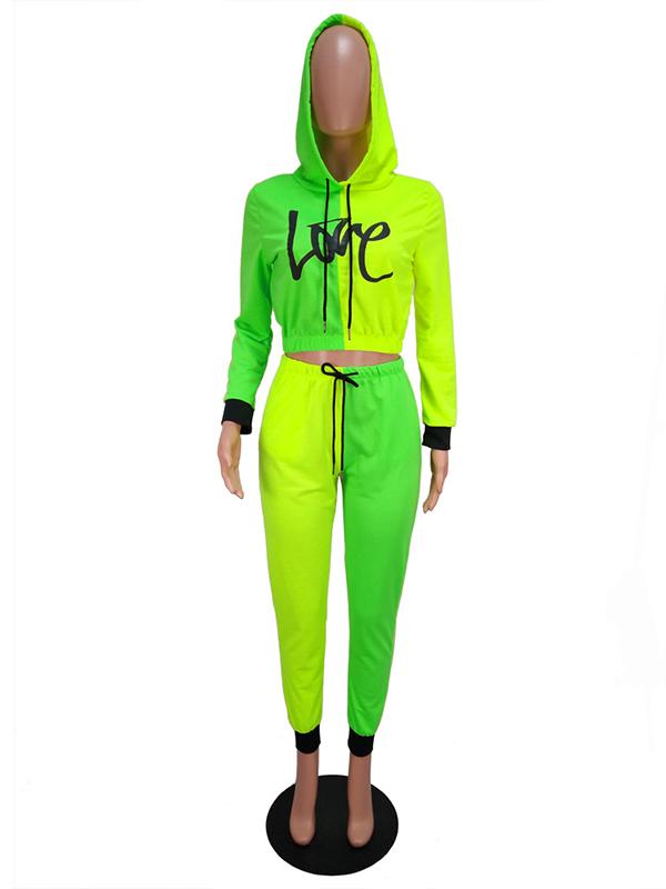 Letter Print Split-joint Hoodies & Sports Pants Suits
