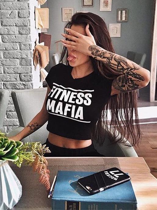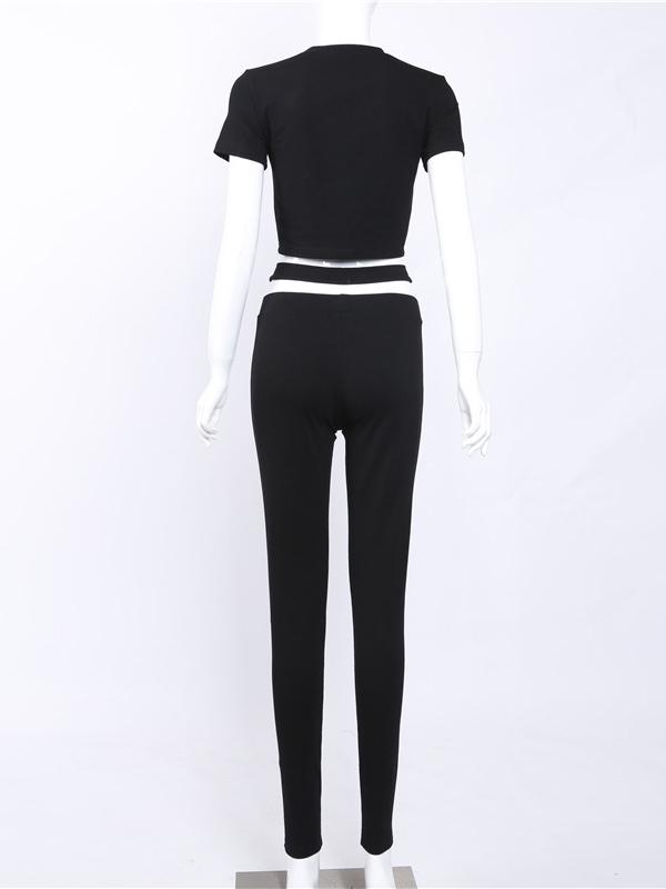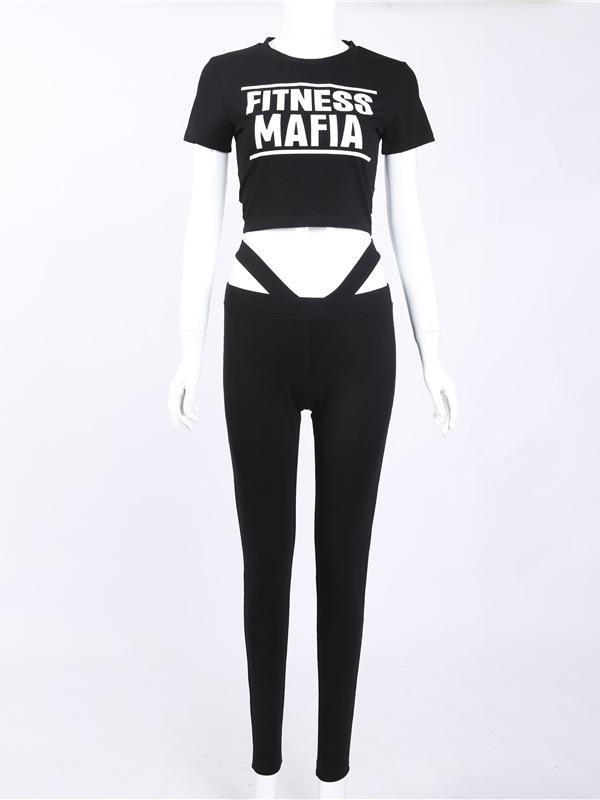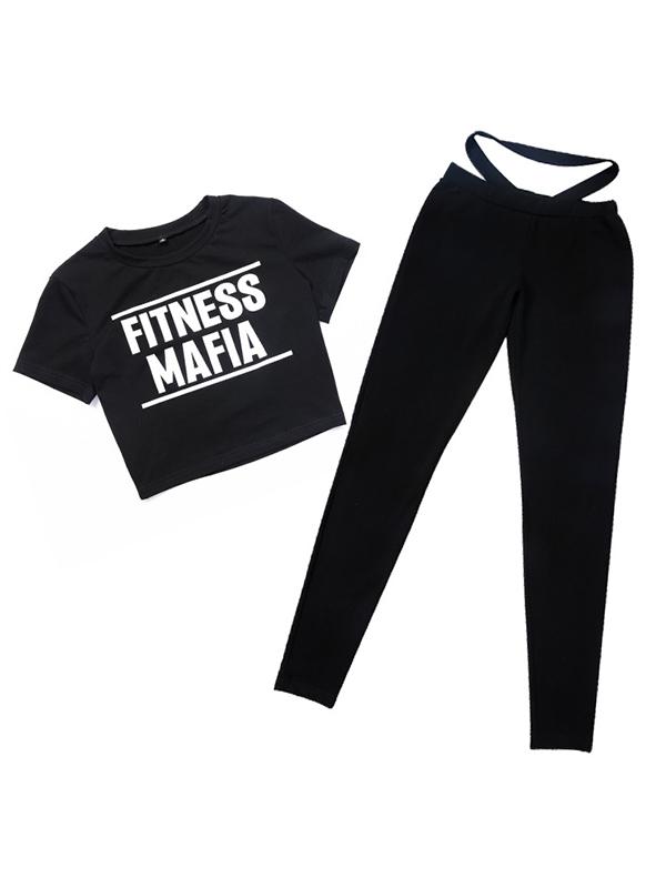 Letter Print Tee&Solid Leggings Yoga&Gym Suits