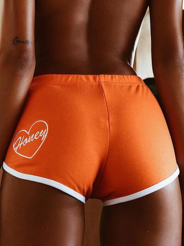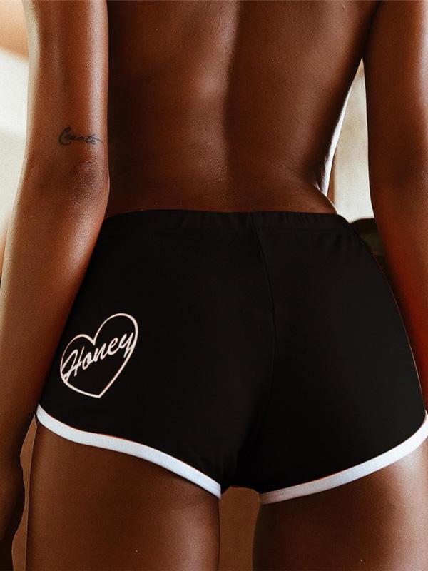 Letter Printed Contrast Trim Sport Shorts