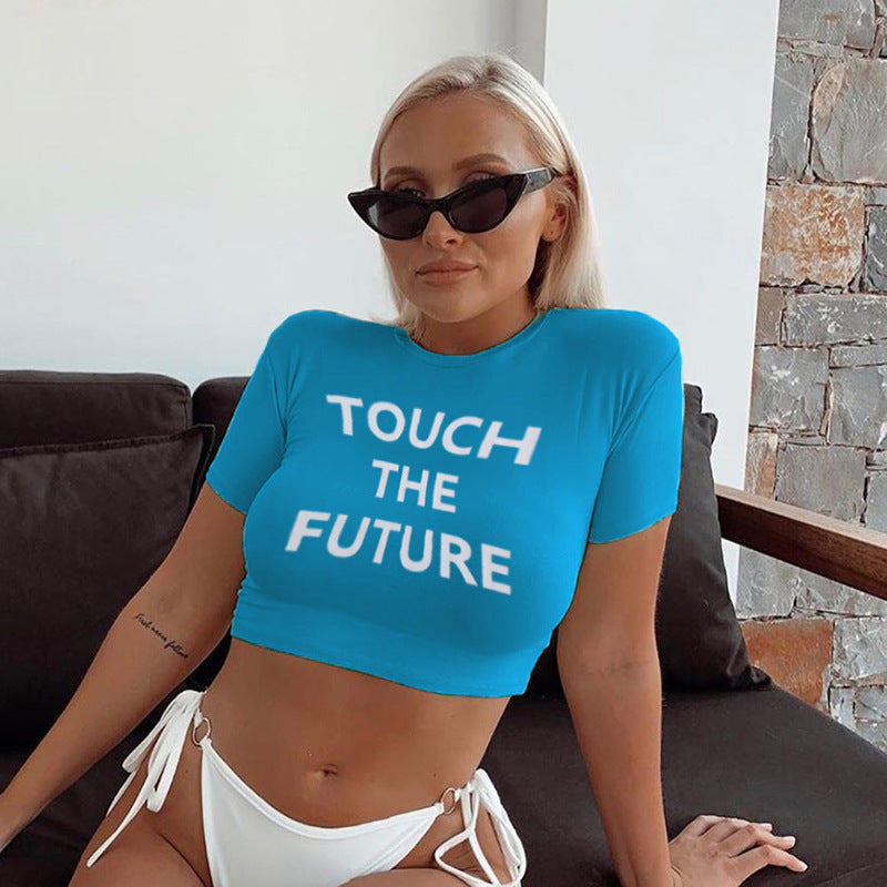 Letter printed tight T-shirt fashion short-sleeved shirt ACTIVEWEAR