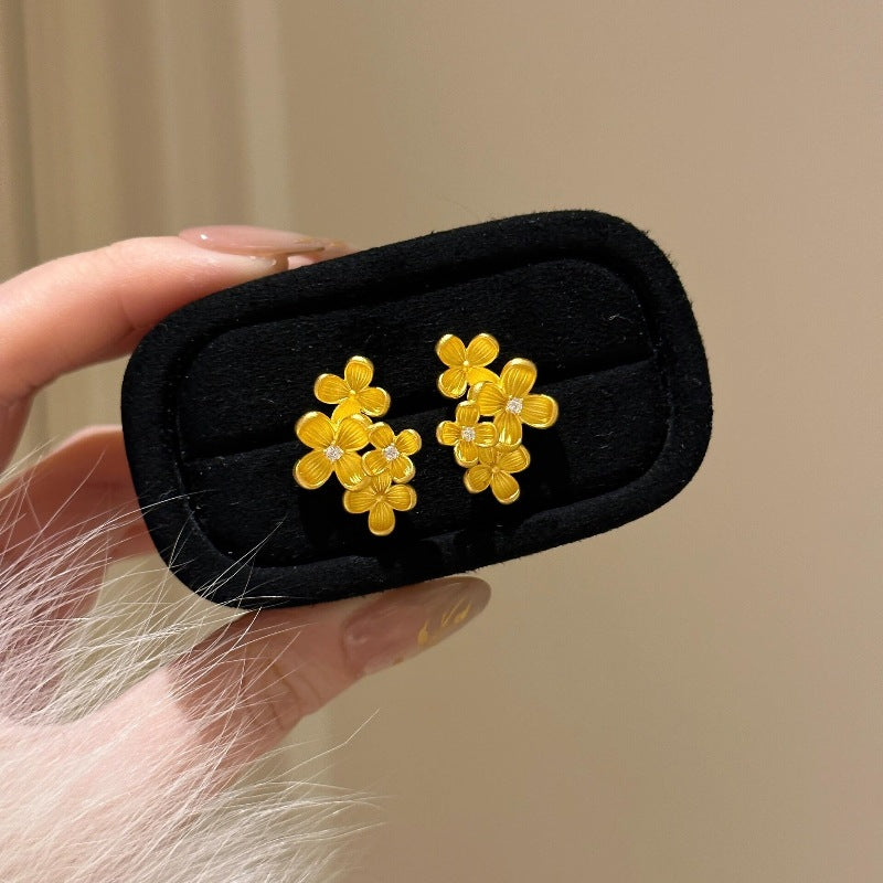 Light luxury retro brushed osmanthus diamond stud earrings bracelet necklace new Chinese style high-end exquisite jewelry set
