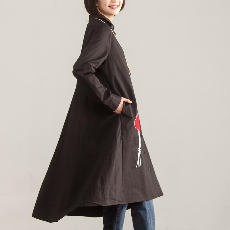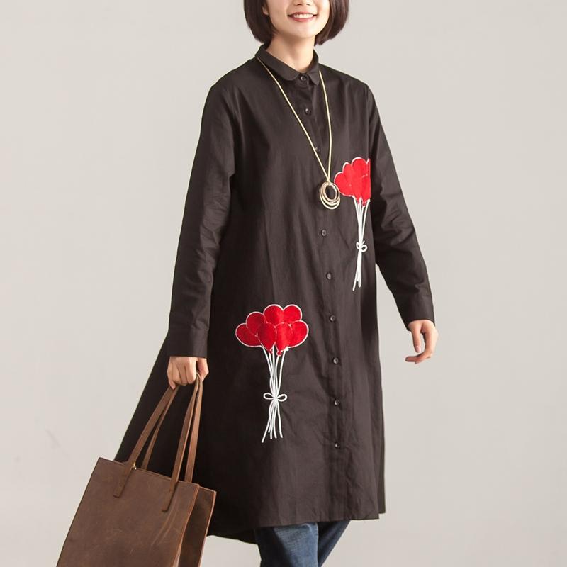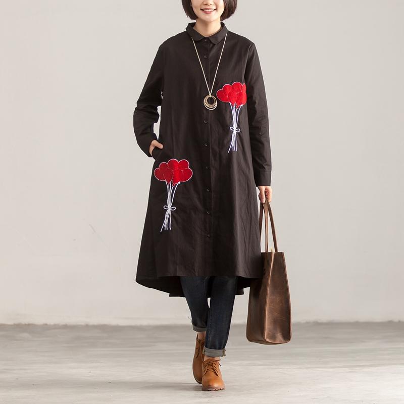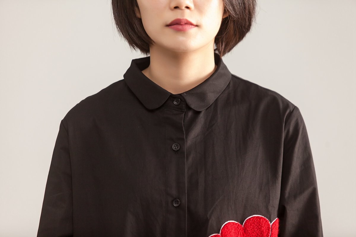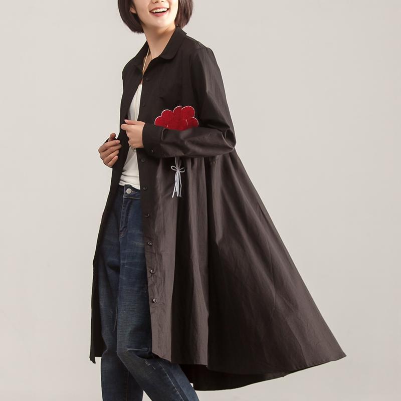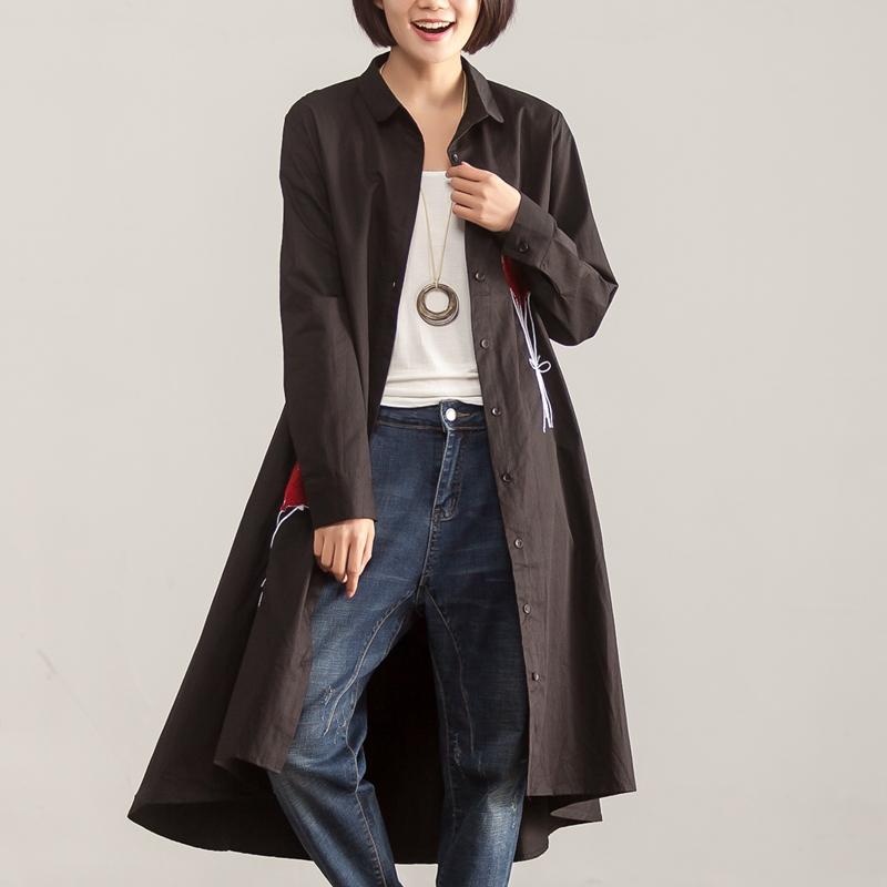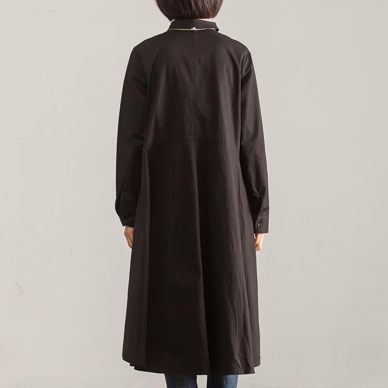 Long Sleeve Polo Collar Single Breasted Black Irregular Shirt