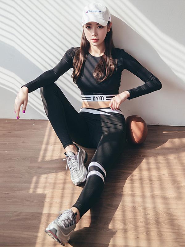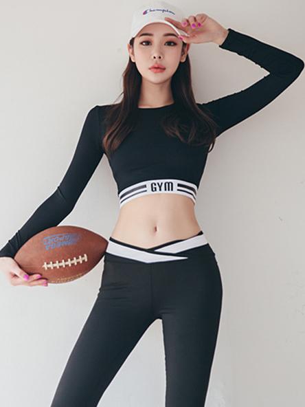 Long Sleeve Short Tops and Tight Leggings Yoga&Gym Suits