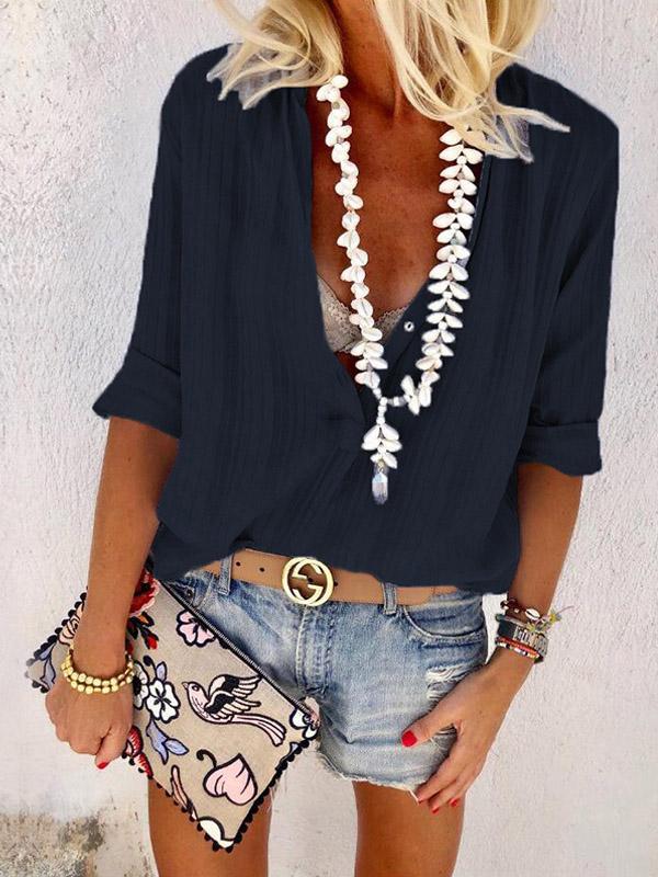 Long Sleeve V Neck Bohemia T-Shirt Tops