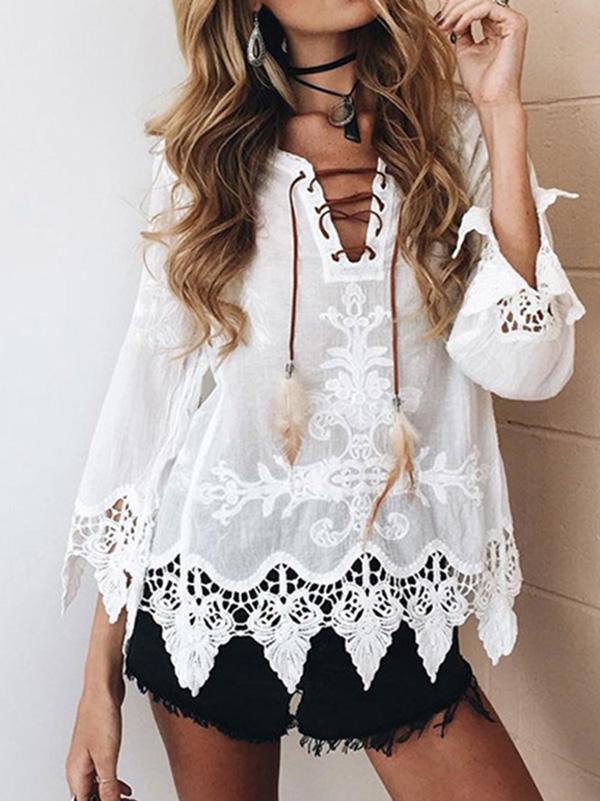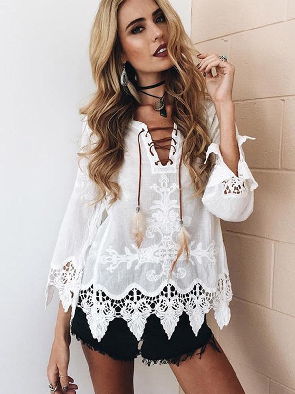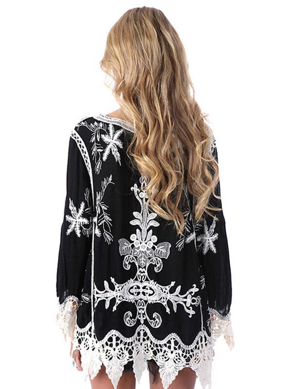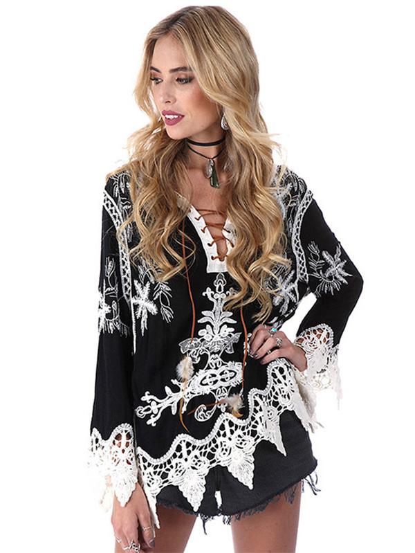 Long Sleeves Bohemia V-neck Floral Blouses&shirts Tops