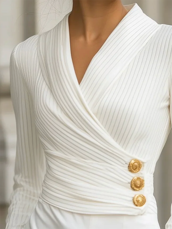 Long Sleeves Buttoned Striped V-Neck T-Shirts Tops
