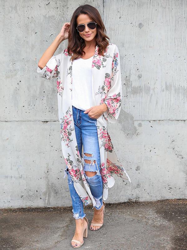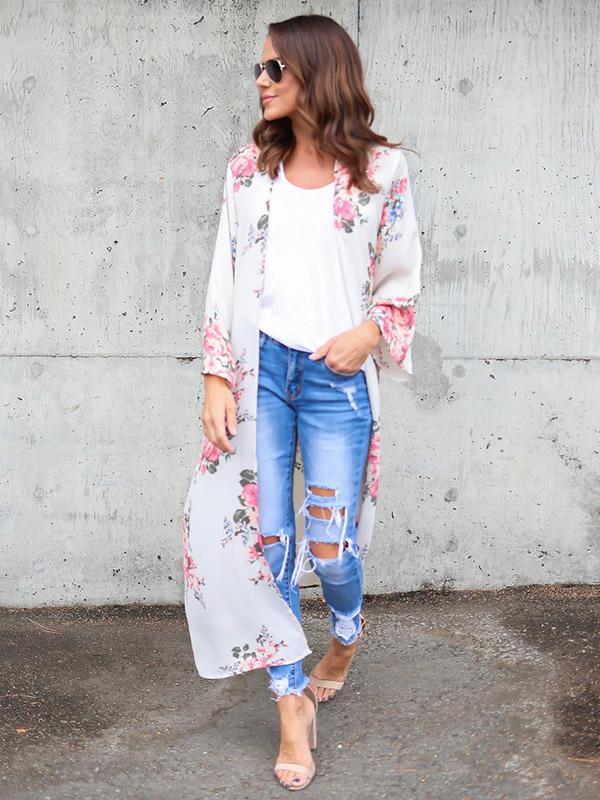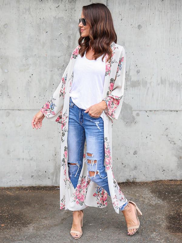 Long Sleeves Chiffon Fashion Floral Printed Cover-up Outwear