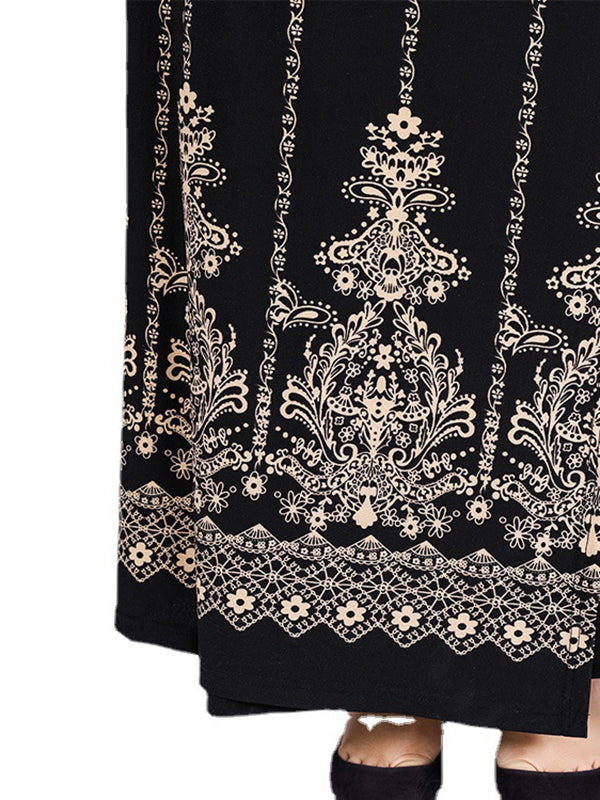 Long Sleeves Floral Printed Split-Joint V-Neck Maxi Dresses Plus Dresses