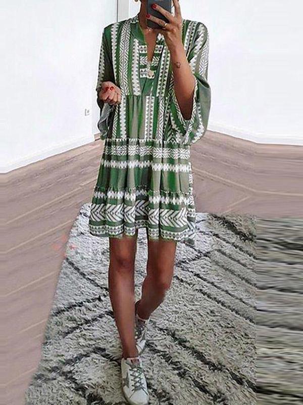 Long Sleeves Green V-neck Mini Dresses