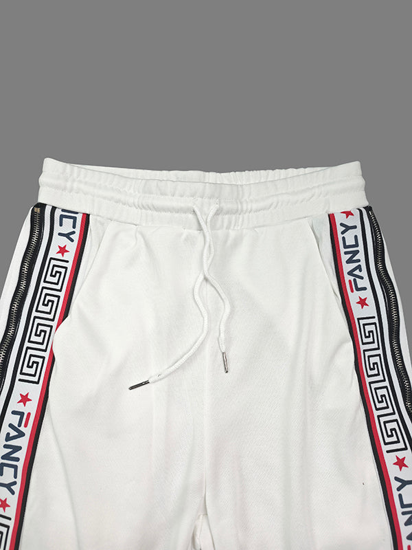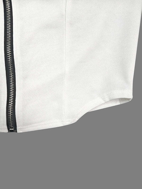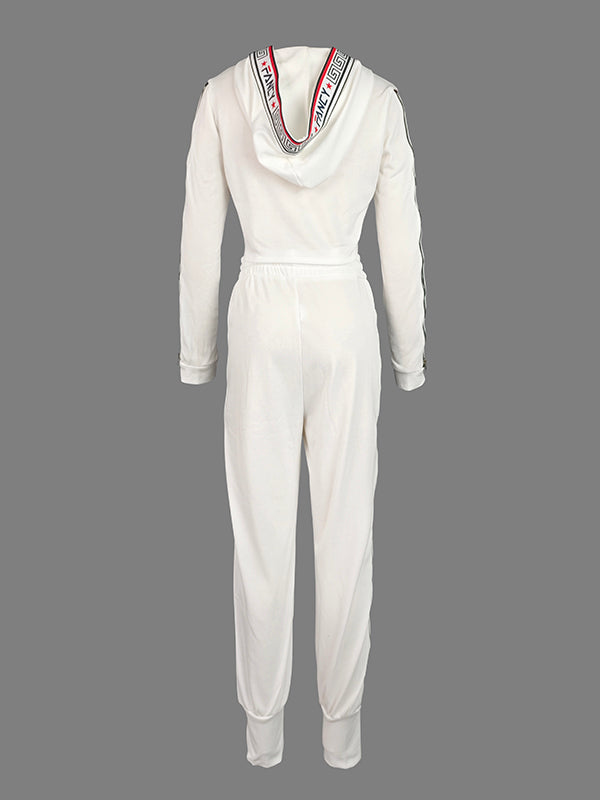 Long Sleeves Letter Print Split-Side Zipper Hooded Jackets+Pants Two Pieces Set