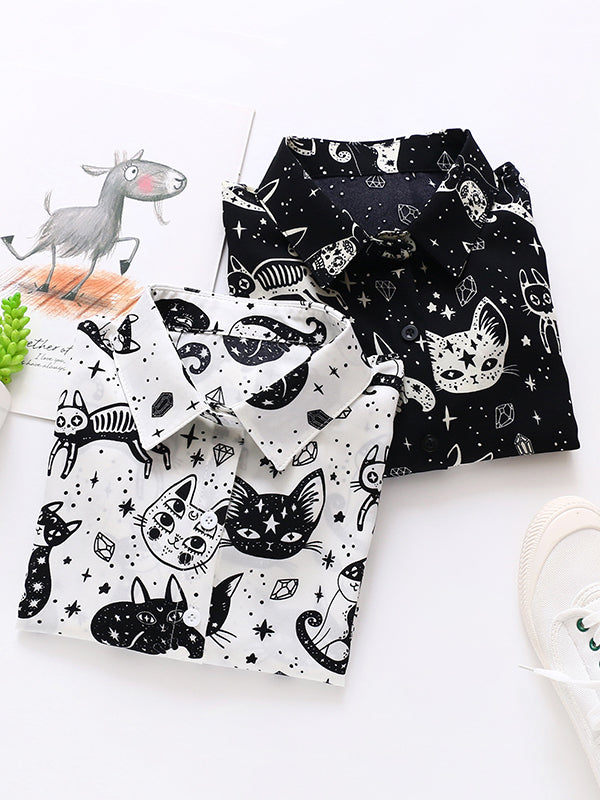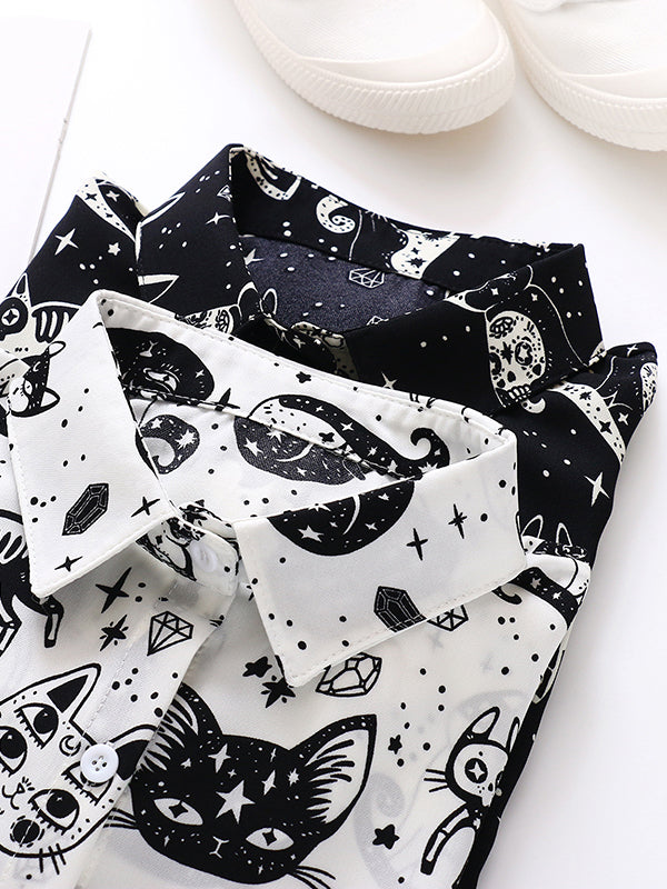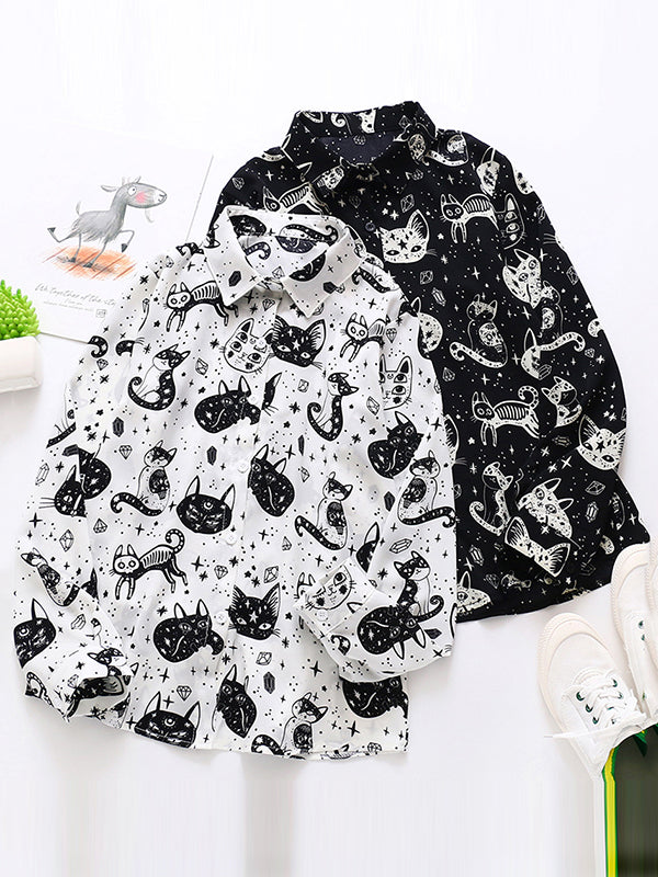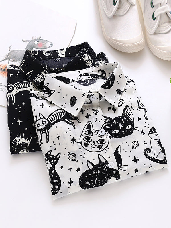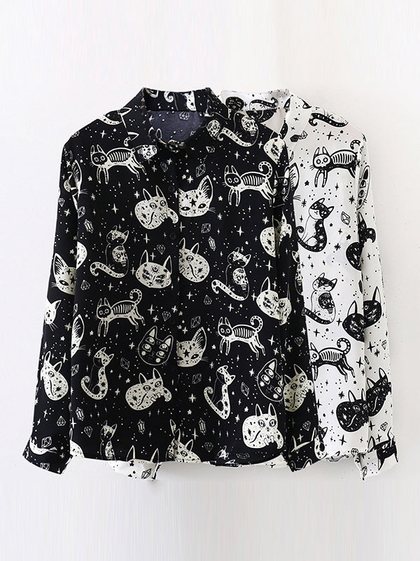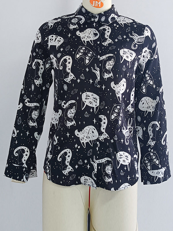 Long Sleeves Loose Animal Printed Buttoned Lapel Blouses&Shirts Tops
