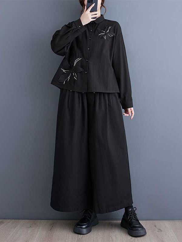 Long Sleeves Loose Applique Buttoned Embroidered Lapel Blouses&Shirts Tops