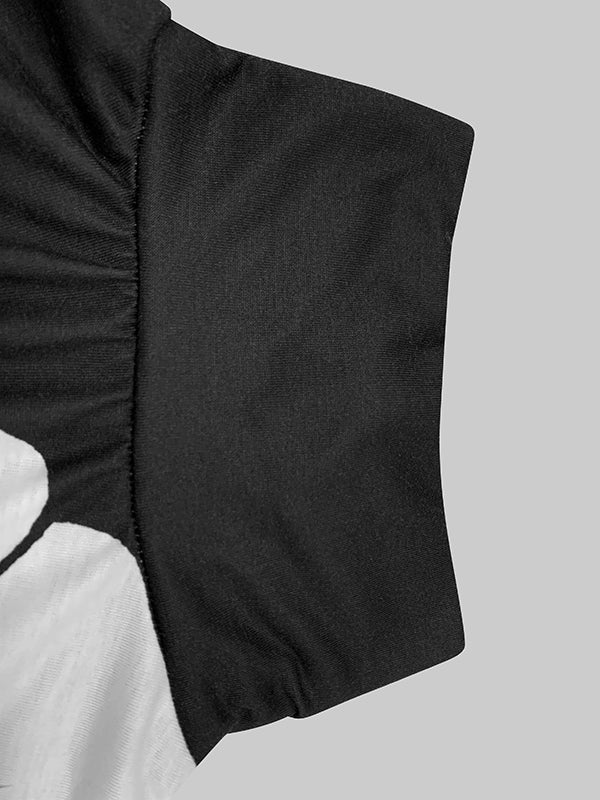 Long Sleeves Loose Asymmetric Floral Printed Split-Joint High Neck T-Shirts