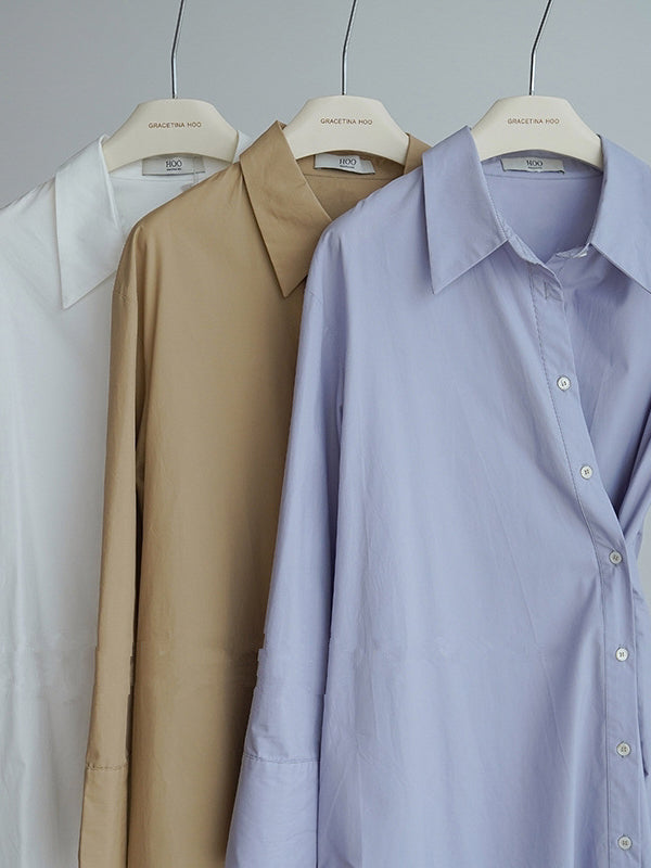 Long Sleeves Loose Asymmetric Solid Color Lapel Shirt Dress