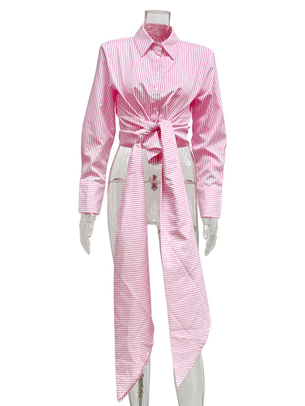 Long Sleeves Loose Asymmetric Split-Joint Striped Lapel Blouses
