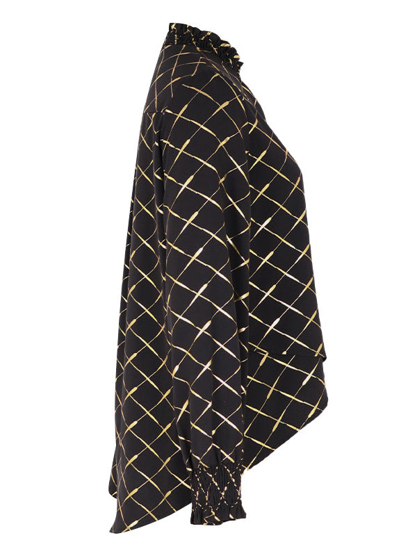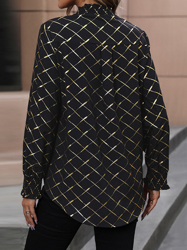 Long Sleeves Loose Bronzing Elasticity Split-Joint V-Neck Blouses&Shirts Tops