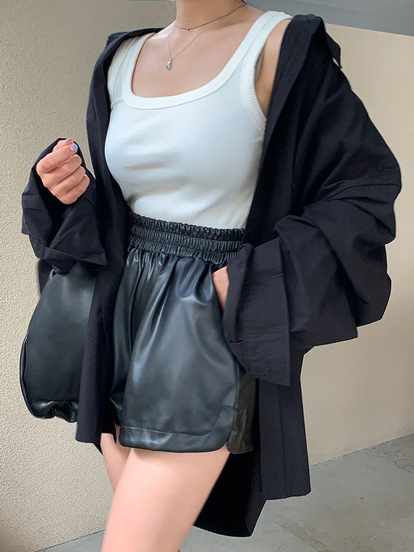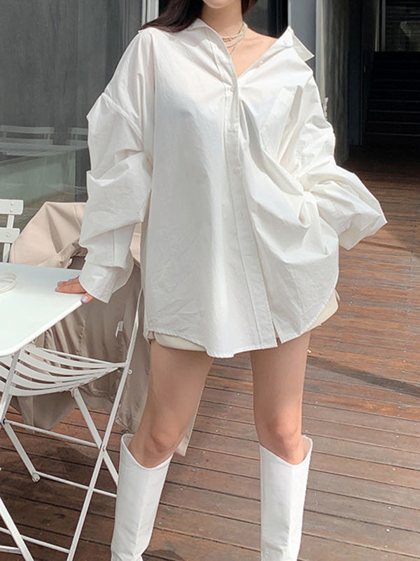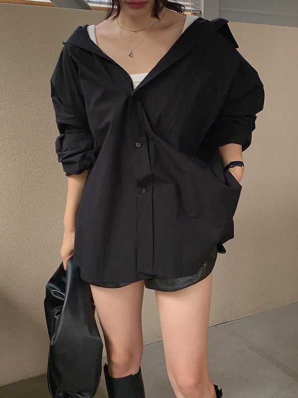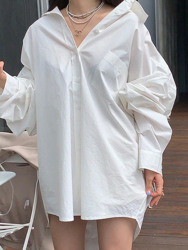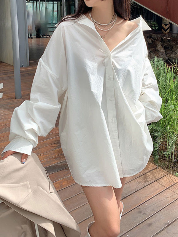 Long Sleeves Loose Buttoned Pockets Solid Color Lapel Blouses&Shirts Tops